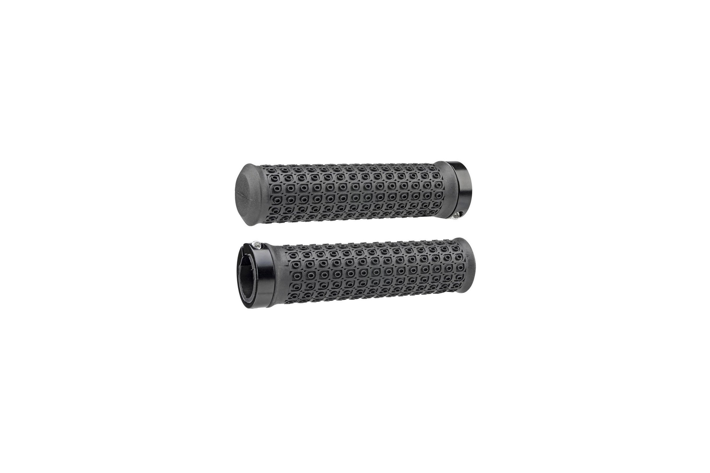 - Aluminiowy pierścienień skręcany na śrubę imbusową mocuje chwyt do kierownicy, niepozwalając na jego zsunięcie