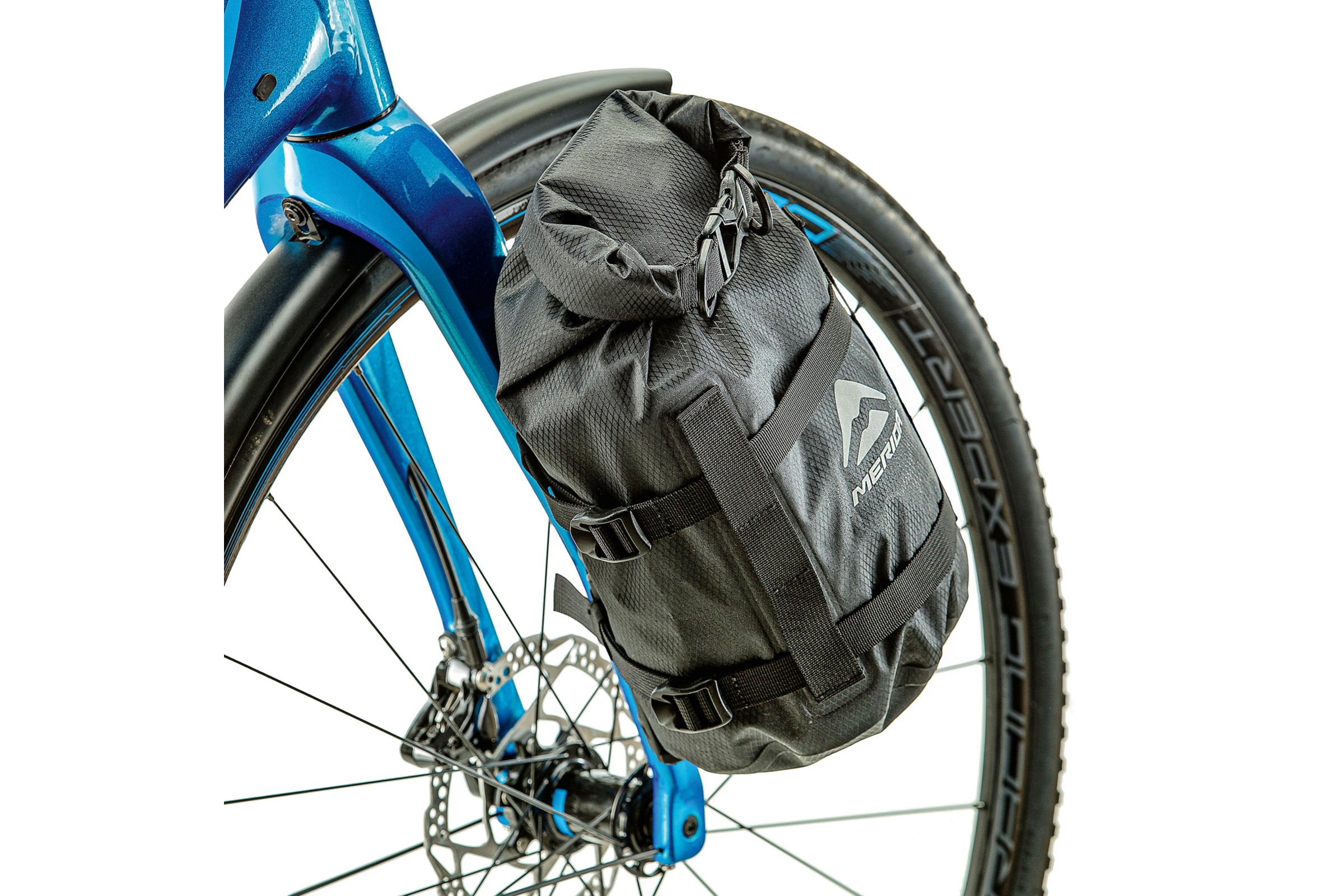 Stelaż z hydrofobową torbą Merida został zaprojektowany z myślą o naszych Silexach, ale doskonale sprawdzi się również w przypadku innych rowerów posiadających otwory montażowe na goleniach widelca. Klatka zapewnia bezpieczne przechowywanie bagażu i/lub części zamiennych podczas każdej wyprawy. Klatkę można w prosty sposób zamontować na widelcach wyposażonych w dedykowane do tego otwory montażowe lub za pomocą dołączonych opasek zaciskowych.