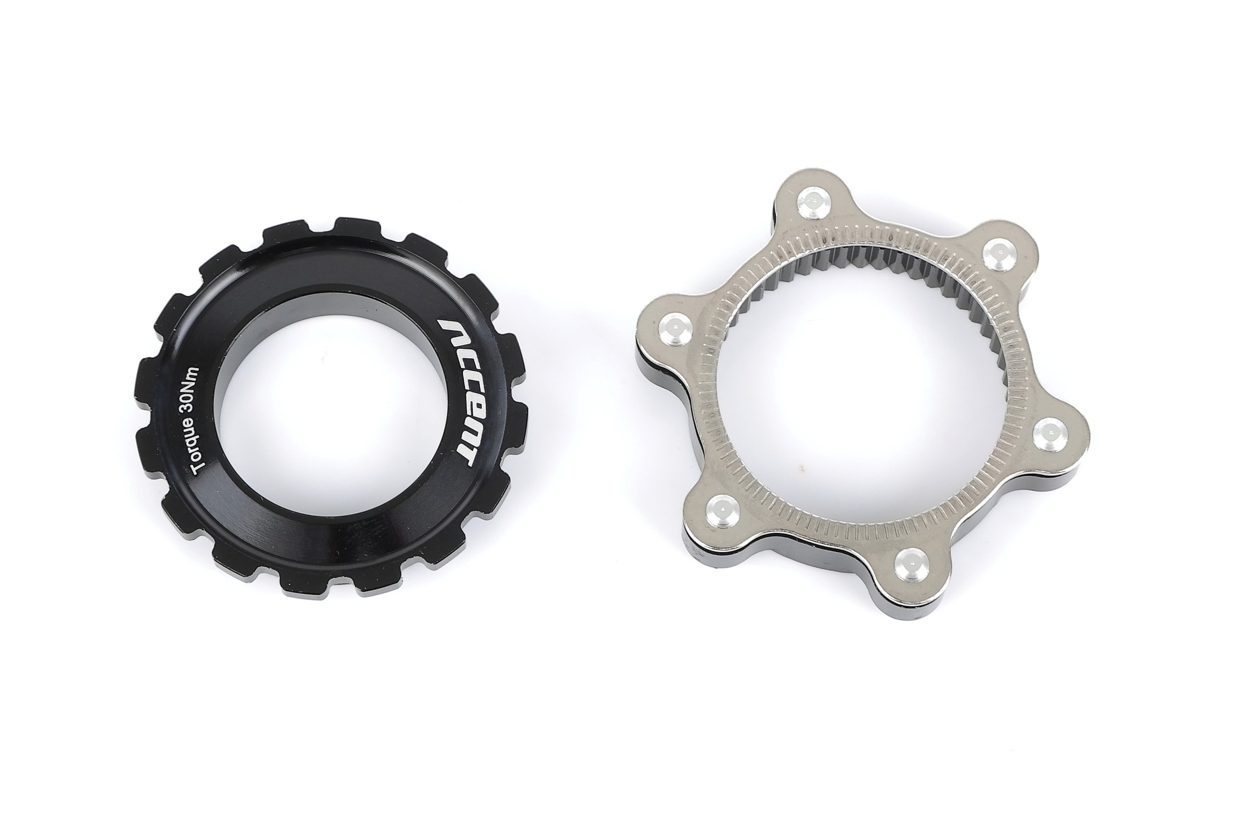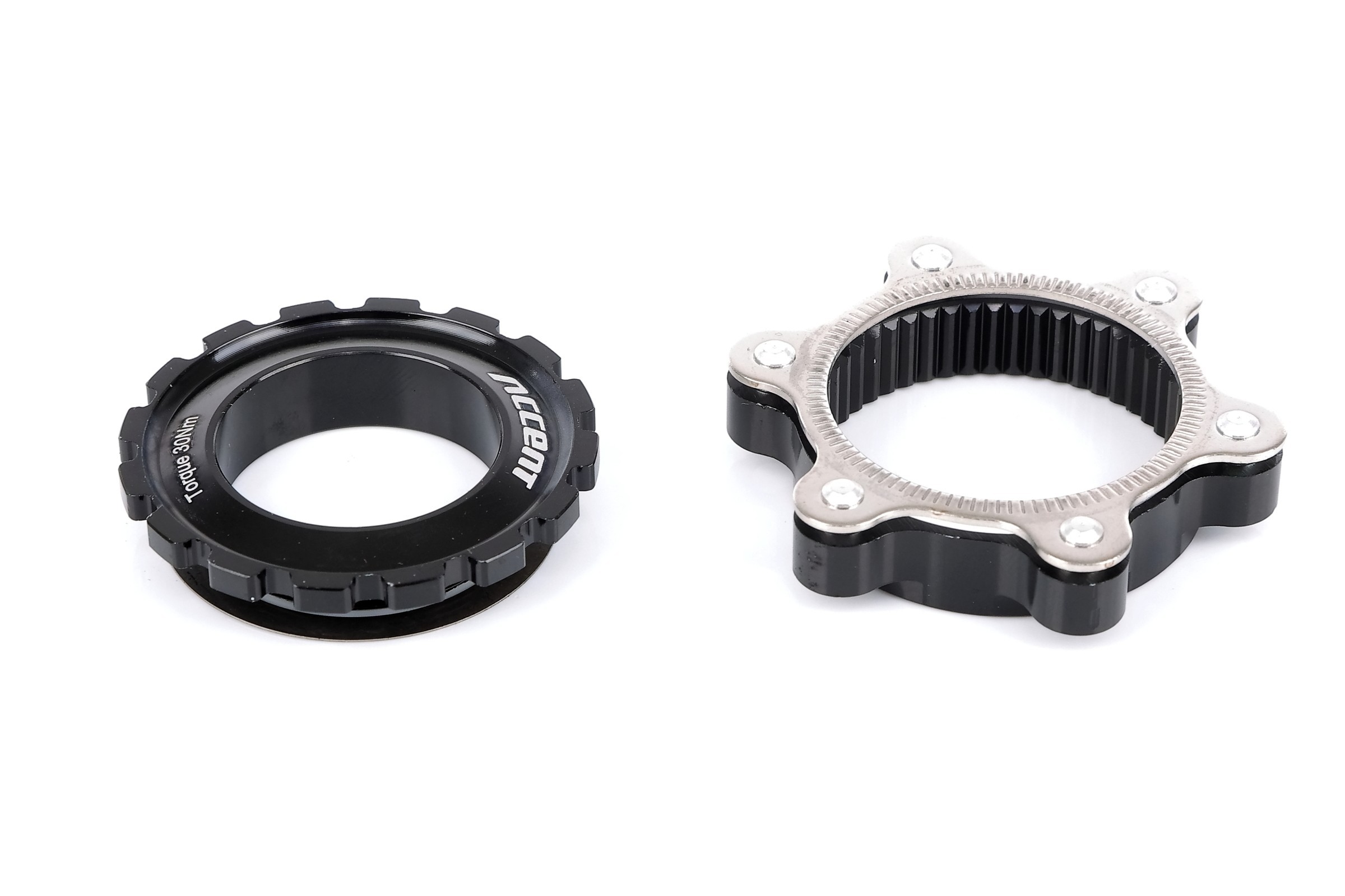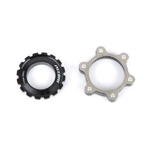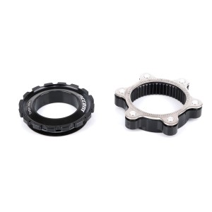 Adapter Centerlock do tarcz na 6 śrub do kół z osią 15/20 mm, dokręcany za pomocą klucza do korb typu Hollowtech/Truvativ.
