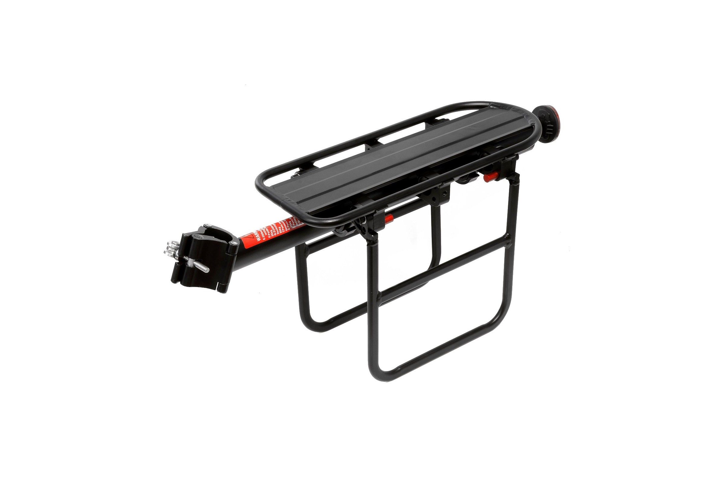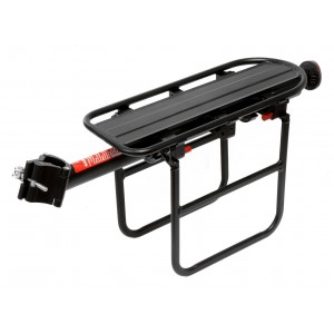 Aluminiowy rurkowy bagażnik rowerowy na sztycę. Posiada regulowaną rurę mocującą oraz pręty boczne na sakwy. Odpowiedni do rozmiaru koła 26" i 28".