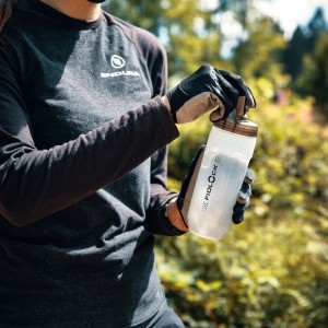 - Ergonomiczny kształt butelki zapewnia pewny chwyt podczas jazdy w rękawicach.
