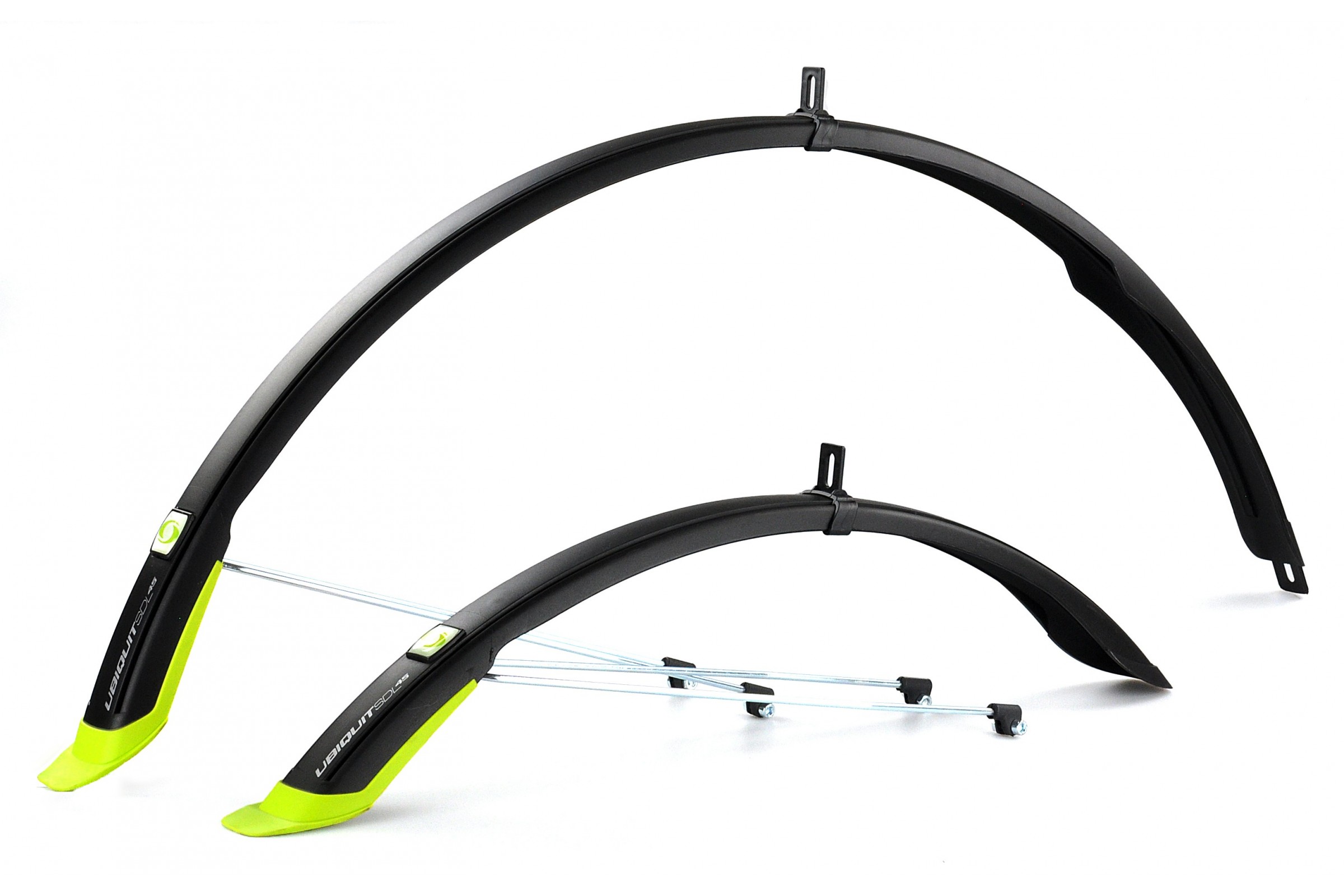 Nowoczesna technologia wtrysku dwukomponentowego umożliwia zastosowanie w tylnych płetwach elastycznego tworzywa high impact, odpornego na działania mechaniczne i środowiskowe. Jednocześnie tworzywo elastyczne jest lżejsze i może być barwione na inny kolor niż właściwy rdzeń błotników. Wypadkową zastosowania tych dwóch tworzyw jest możliwość zaoferowania produktu o znakomitych właściwościach użytkowych oraz rozwiązań wizualnych dotychczas nie spotykanych w tym segmencie błotników. Błotniki montuje się do roweru za pomocą 3 elementów. Pierwszym elementem jest ruchoma obejma, która przesuwa się po całej długości błotnika. Dzięki temu rozwiązaniu dopasujemy błotnik do każdej ramy, ponieważ nie ogranicza nas pole mocowania tak istotne przy innych rozwiązaniach. Drugim elementem mocowania są druty boczne, które trzymają błotnik w stałej odległości od opony przez co nie lata on podczas jazdy. Trzeci element montażu występuje tylko w błotniku tylnym - w wersji SDL (Simpla Design Long) jest to fasolka w błotniku, przez którą przykręca się błotnik do dołu ramy. Dodatkowo zaślepki otworów montażowych drutów bocznych w tylnej części błotnika przeznaczone są na odblaskowe naklejki 3D dla podniesienia bezpieczeństwa rowerzysty na drodze. Błotniki występują w dwóch wersjach wykonania elementów stalowych – Inox oraz Ocynk. W wersji Inox, druty oraz wszystkie elementy montażowe wykonane są ze stali nierdzewnej co zapewnia perfekcyjny wygląd przez długie lata. UBIQUIT dedykowany jest do rowerów Urban, City, Trekking oraz Cross.