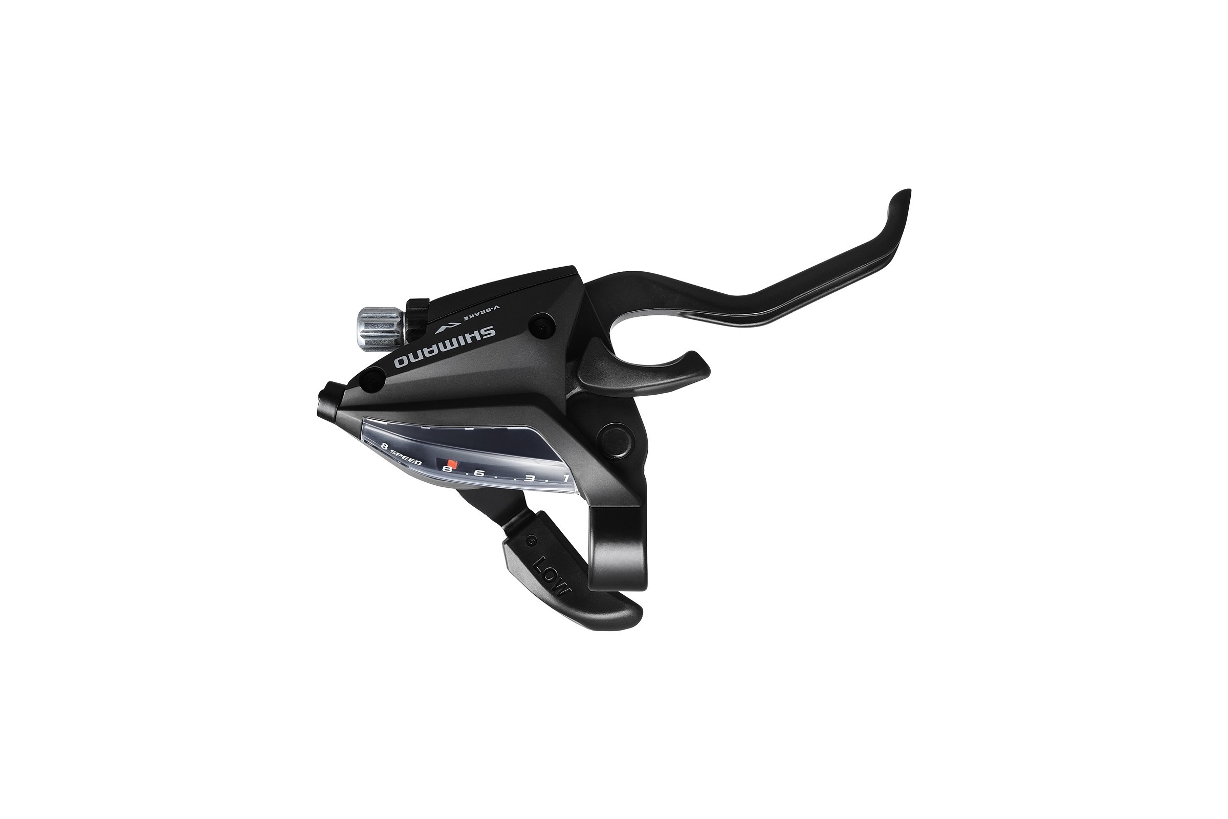 - Ergonomiczny kształt dźwigni pozwala na obsługę hamulca dwoma palcami.