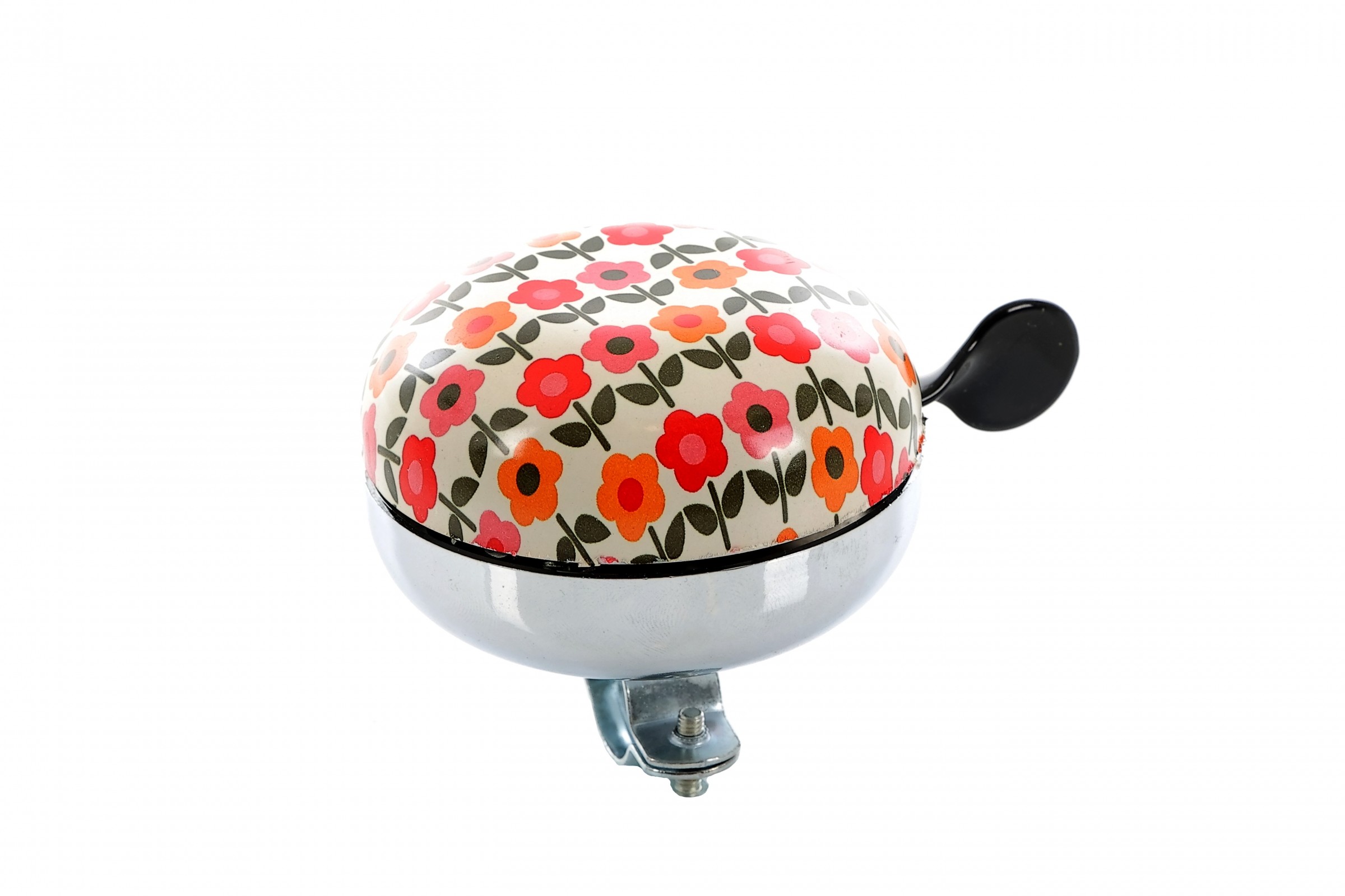 Kolorowy, duży dzwonek do klasycznego miejskiego roweru.