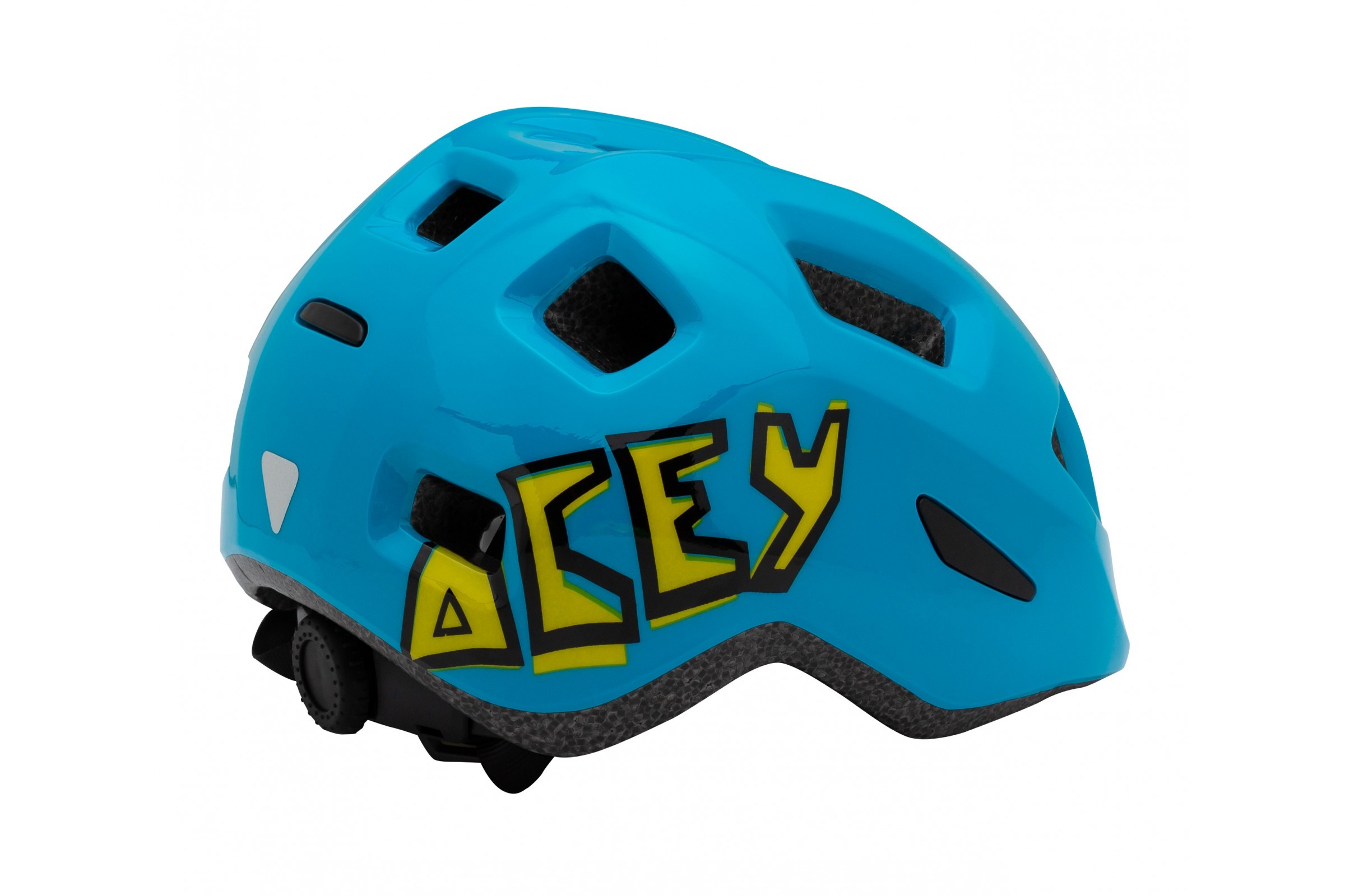 ACEY to stylowy i wytrzymały kask dla najmniejszych rowerzystów, wyprodukowany według technologii In-mold. Kask posiada 10 otworów wentylacyjnych, które zaprojektowano z myślą o skutecznym odprowadzaniu ciepła. Acey dobrze leży na głowie dzięki systemowi regulacji za pomocą dużego pokrętła, łatwo dostępnego dla rodziców. Delikatne antybakteryjne wkładki nie zakłócają prawidłowej wentylacji. Bezpieczeństwo podnoszą także elementy odblaskowe.
