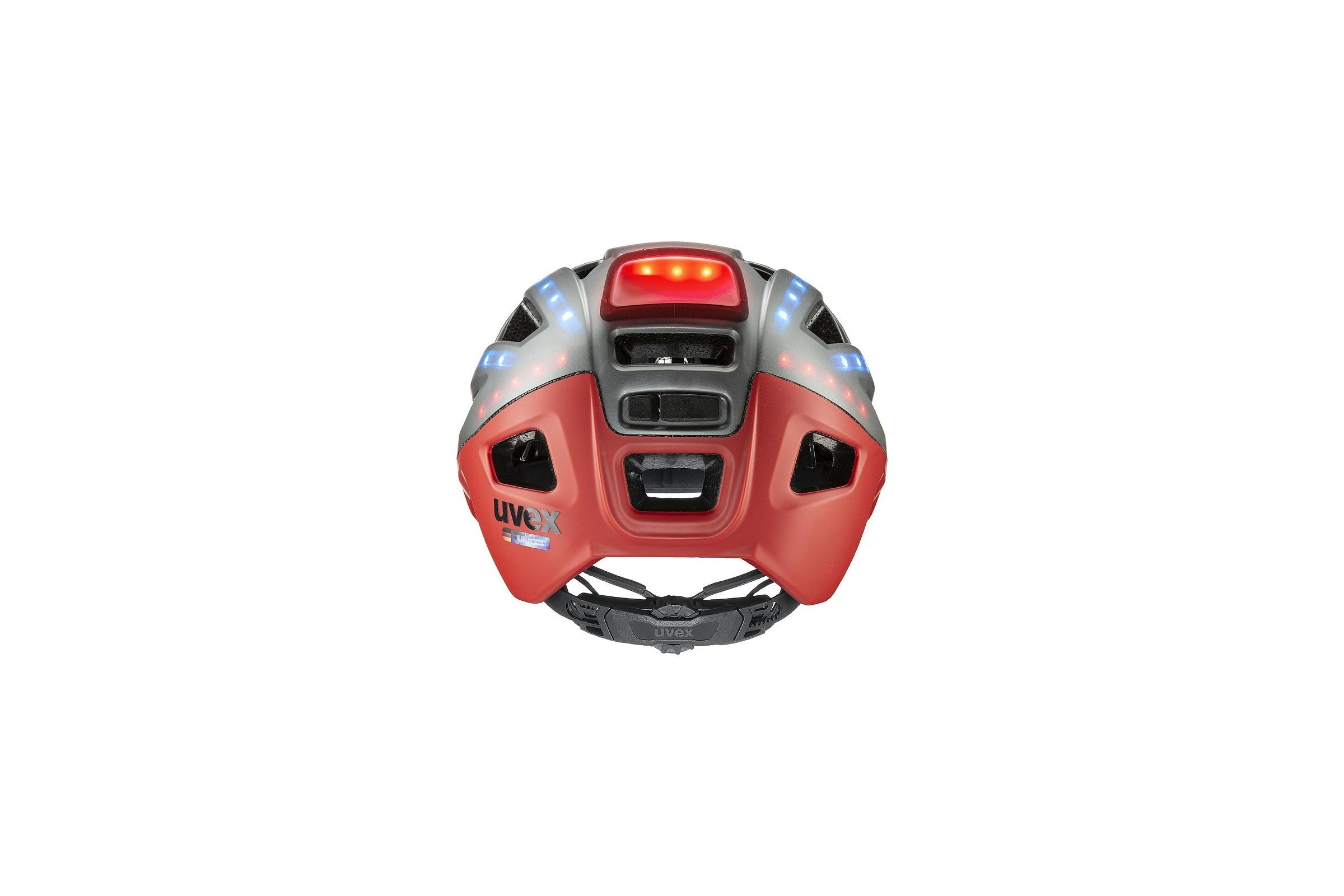 Doskonale widoczny i super bezpieczny. 40 zintegrowanych diod LED w kolorze niebieskim/ czerwonym zapewnią maksymalną widoczność i bezpieczeństwo na ulicach miasta. System LED dopasowuje się do otoczenia zapalając i wyłączając lampy kasku automatycznie aż do 12 godzin. Dyskretna, wbudowana ładowalna bateria USB zasila światła.
