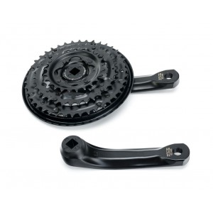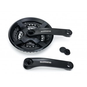 Mechanizm korbowy Shimano FC-TY301 to wszechstronny wybór dla rowerzystów, którzy szukają prostego, ale wydajnego układu napędowego do rowerów z kasetą 6-, 7- lub 8-rzędową. Korba wyposażona jest w trzy tarcze, które są przymocowane na stałe, co zapewnia ich solidność i stabilność. Dzięki zastosowaniu osłony na łańcuch, komponent ten minimalizuje ryzyko spadania łańcucha, co przydaje się podczas jazdy w różnych warunkach.