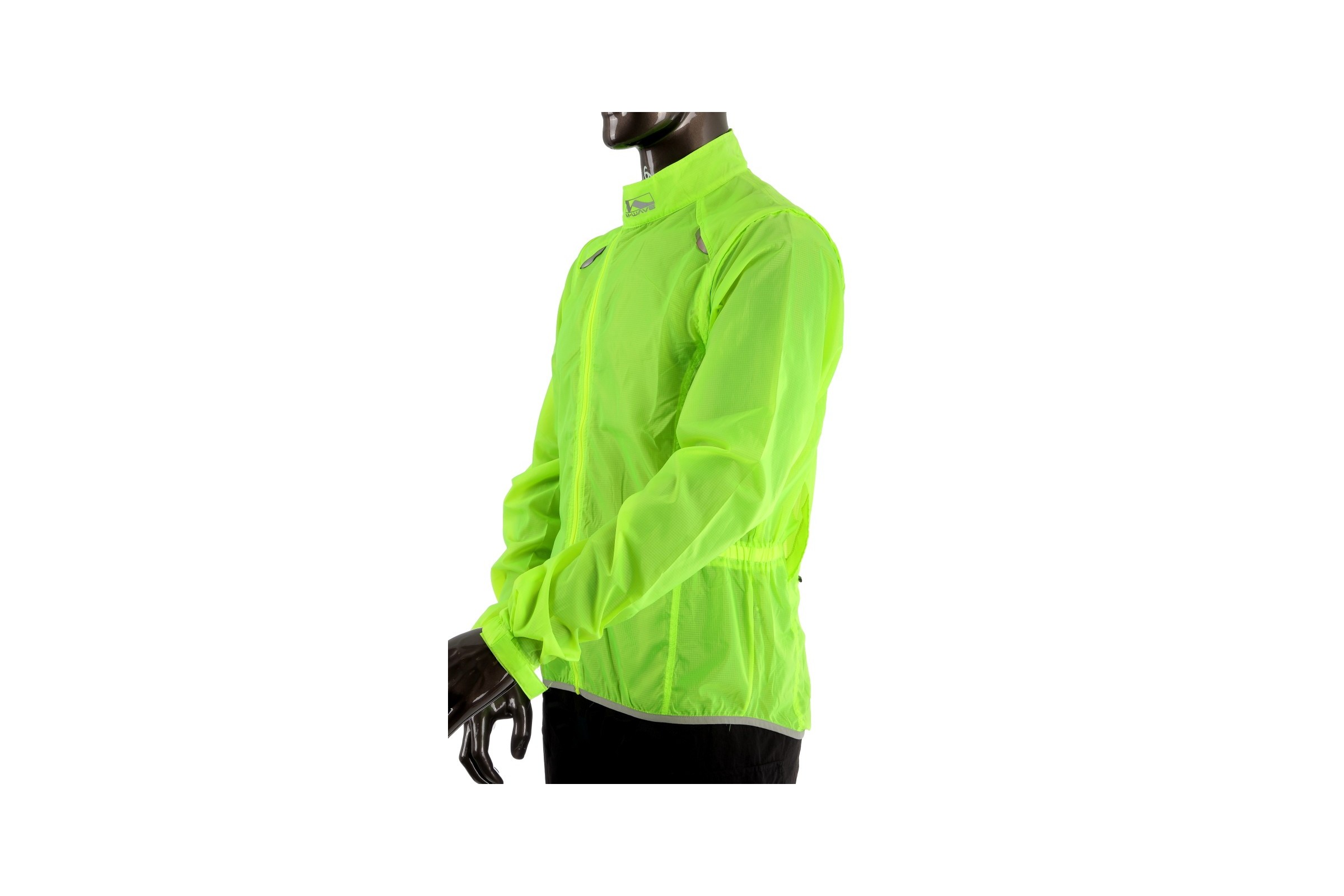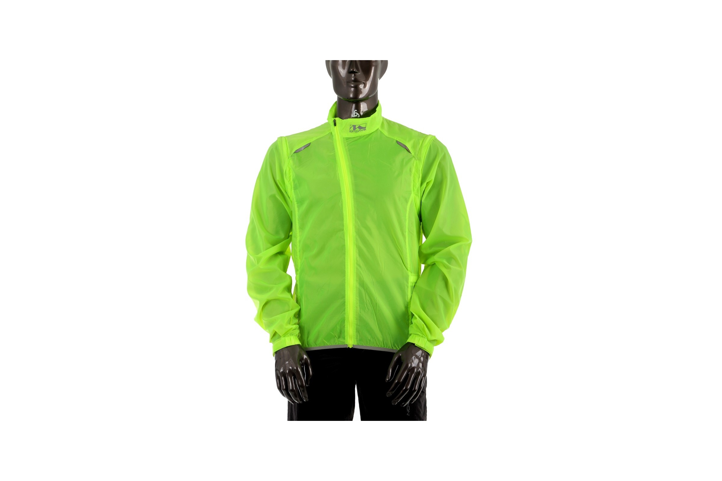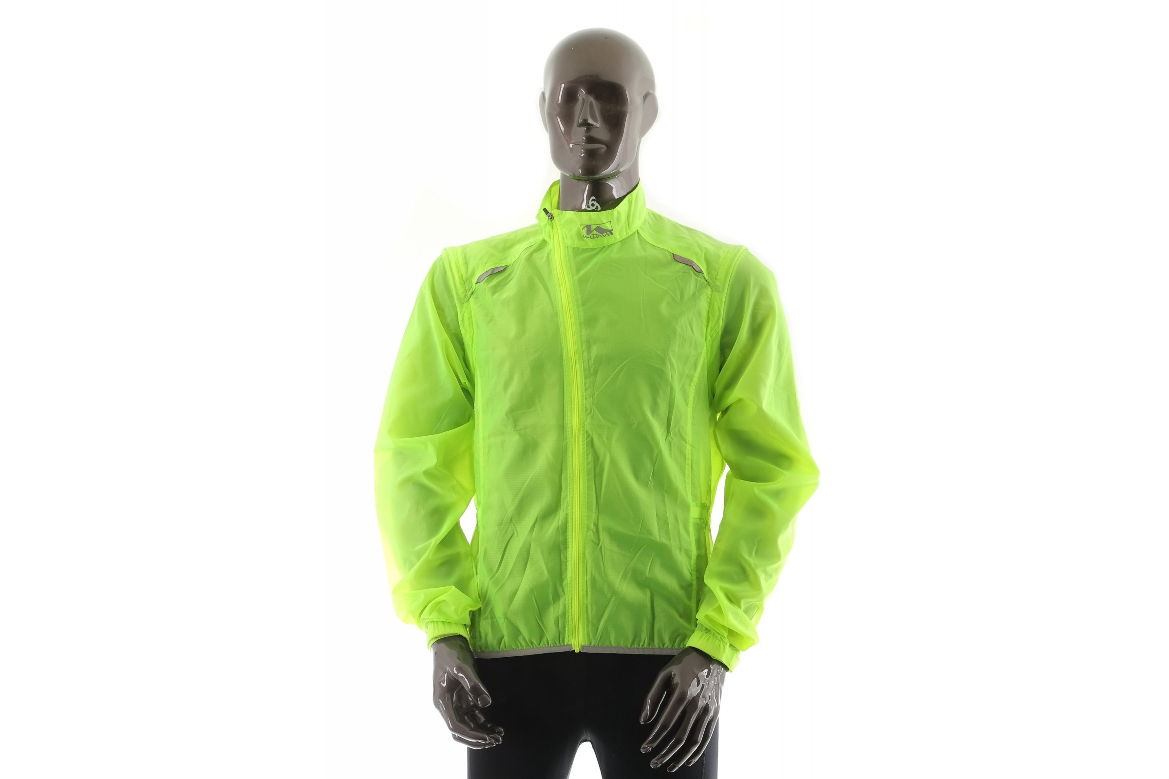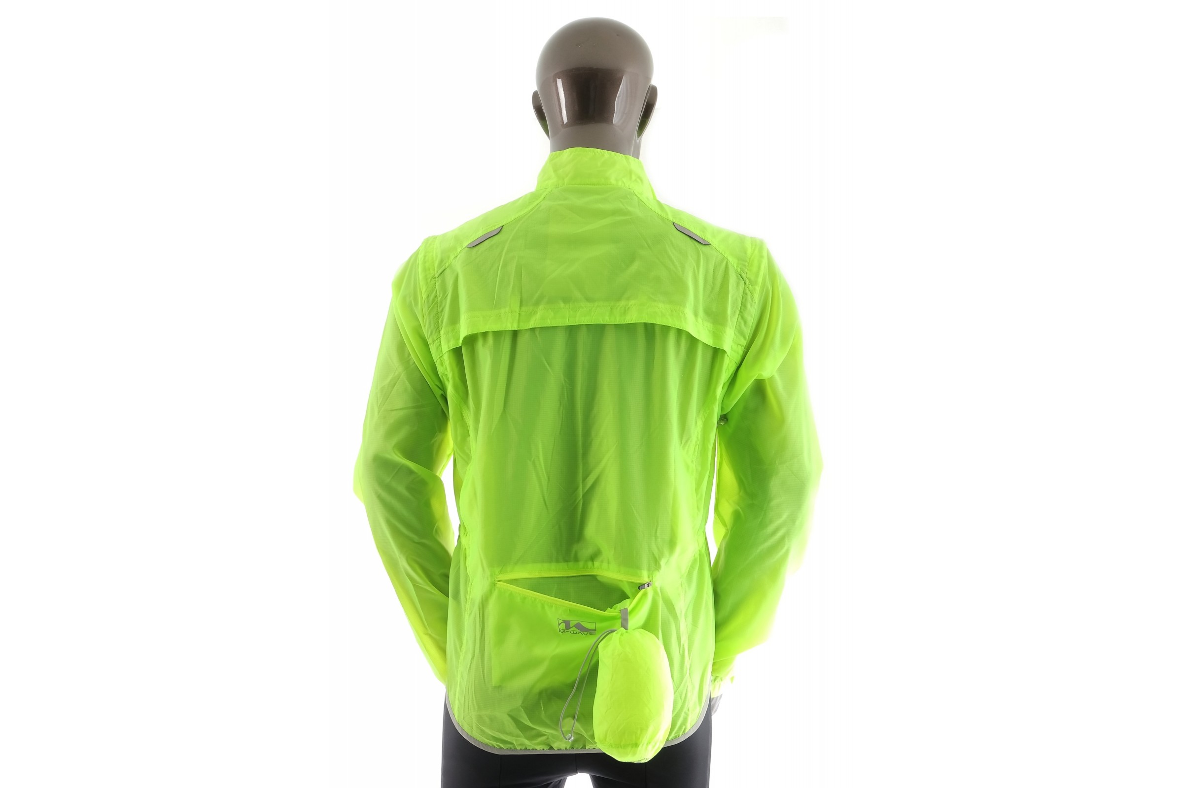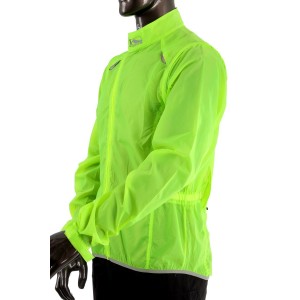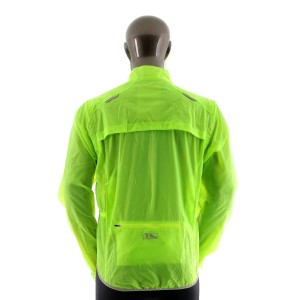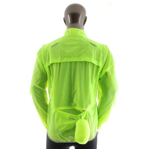 - Informacje dodatkowe: kurtka w jaskrawym zielonym kolorze, kieszeń z tyłu, odpinane rękawy, elementy odblaskowe, otwory wentylacyjne na plecach, rękawy zakończone ściągaczem na rzep, możliwość schowania kurtki do pokrowca wszytego w kieszeni tylnej.