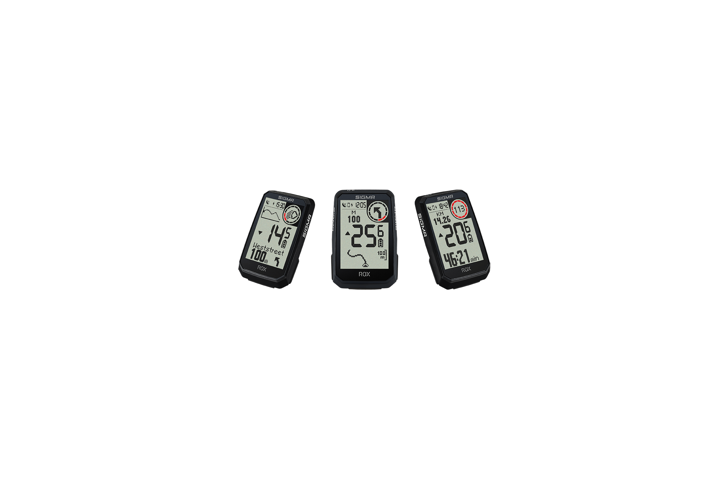 Podczas nawigacji na wyświetlaczu urządzenia ROX 4.0 ENDURANCE pokazywana jest trasa i wskazówki zakręt po zakręcie. Strzałka skrętu i sygnał dźwiękowy ostrzegają o następnym zakręcie. Aby upewnić się, że nie przegapisz zakrętu, czerwone koło odlicza odległość do następnego zakrętu za pomocą kolorowych pasków. Jest ich coraz mniej, im bliżej zakrętu. Urządzenie ROX 4.0 ENDURANCE wyświetla również nazwę ulicy. Jeśli spontanicznie zboczysz z sugerowanej trasy, urządzenie ROX, w połączeniu z aplikacją SIGMA RIDE, błyskawicznie zaplanuje nową trasę do miejsca docelowego z odpowiednio zaktualizowanym profilem wysokości. - PLANOWANIE TRASY