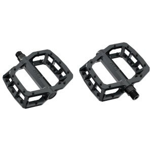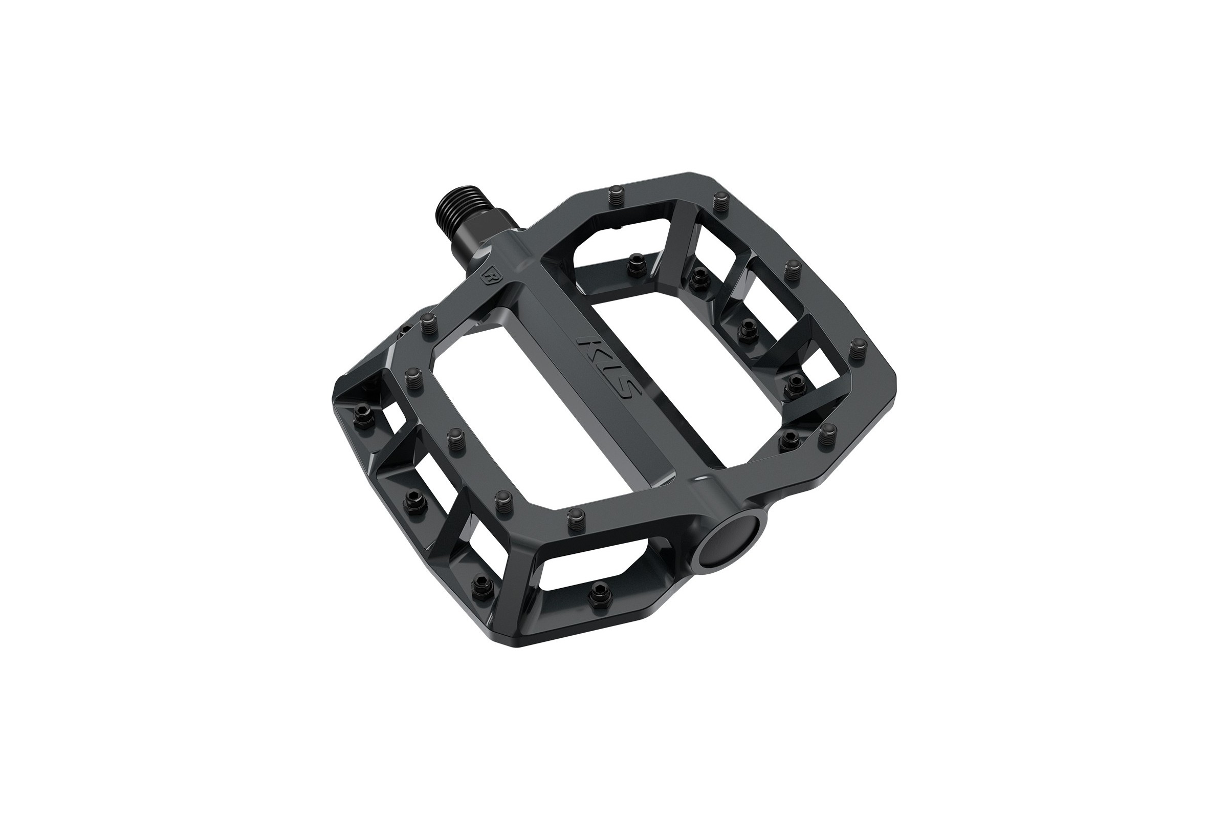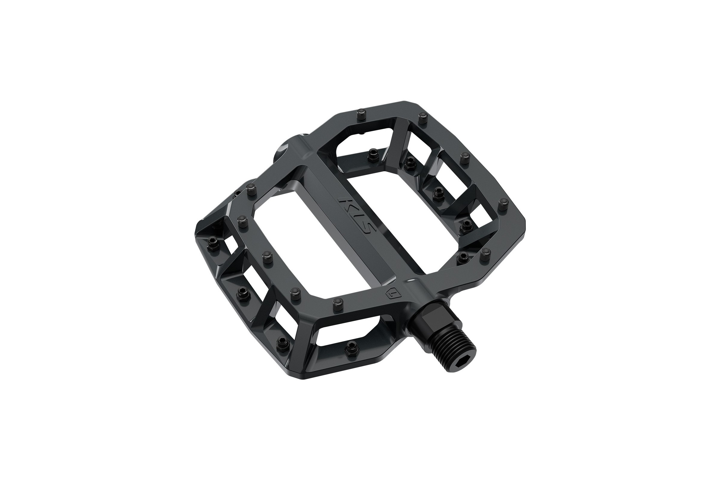 Pedały platformowe KLS FLAT 50 023 mają ergonomiczny kształt, który zapewnia dobrą przyczepność i jednocześnie minimalizuje wagę korpusu pedału. Korpus pedału jest odlewany ciśnieniowo ze stopu aluminium, dzięki czemu jest wytrzymały i stosunkowo lekki. Obrabiana CNC oś Cr-Mo w połączeniu z łożyskami kulkowymi zapewnia płynne pedałowanie nawet w najtrudniejszych warunkach. Wklęsły korpus z 10 bolcami umieszczonymi z każdej strony pedału zapewnia przyczepność nawet w najostrzejszych zakrętach lub podczas jazdy w parkach rowerowych i najtrudniejszych trasach