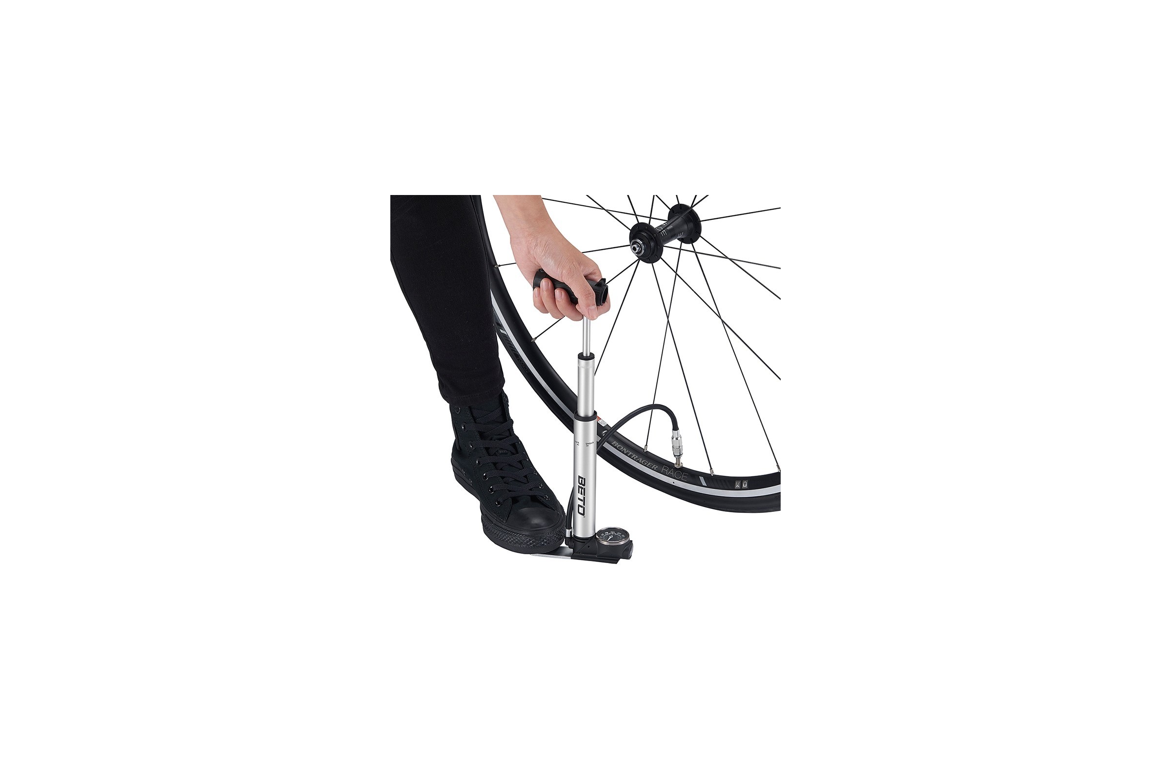 - Lekka, aluminiowa ręczno-podłogowa pompka firmy Beto.