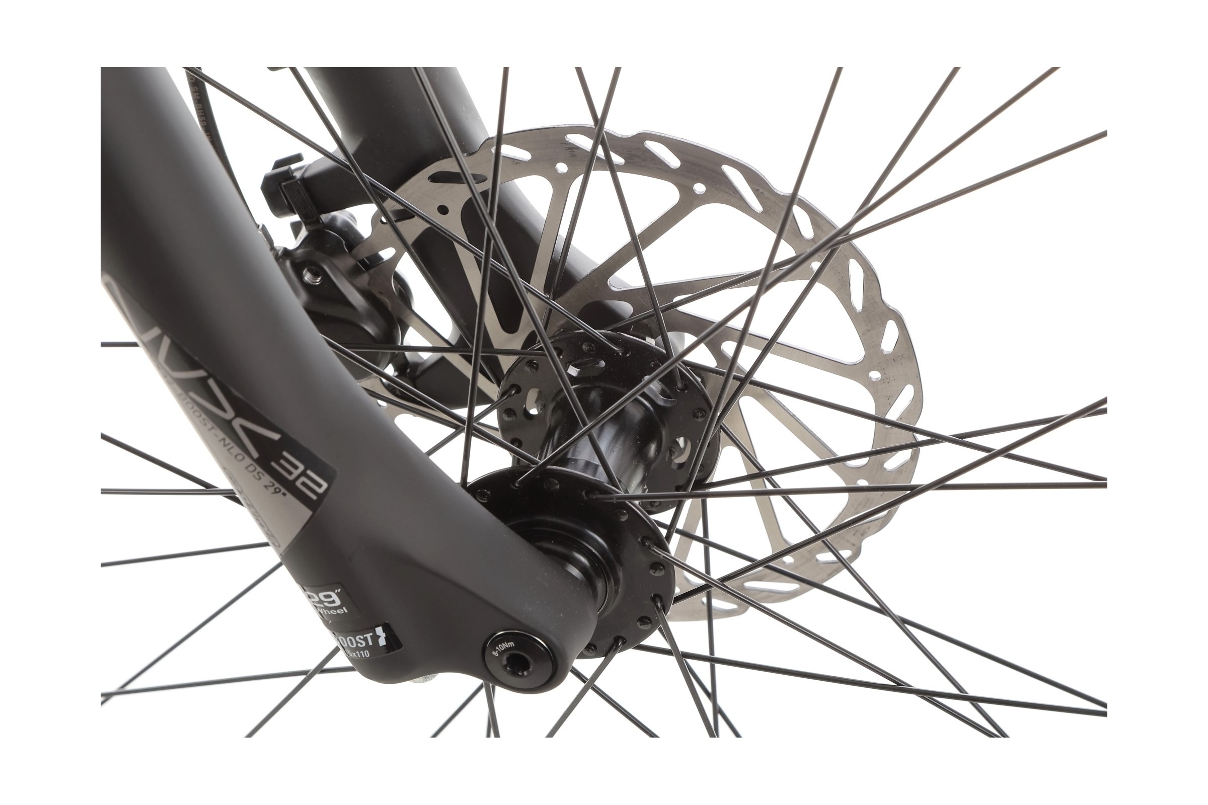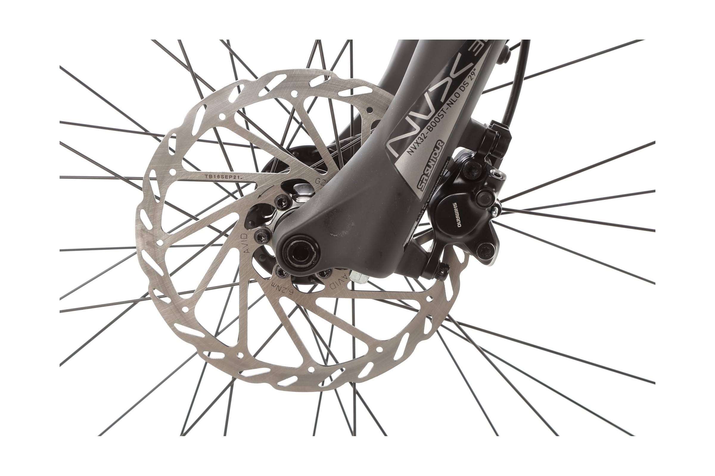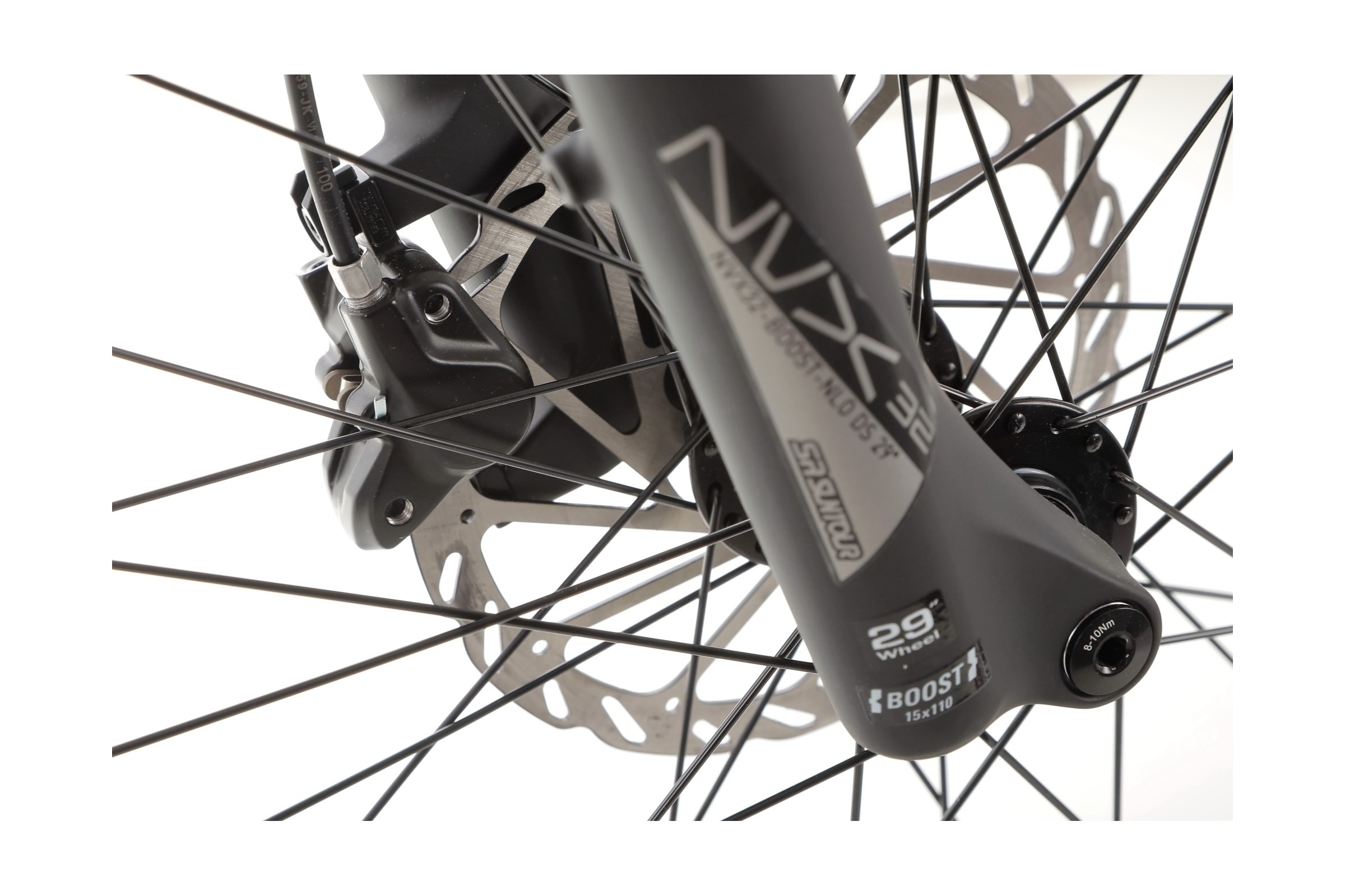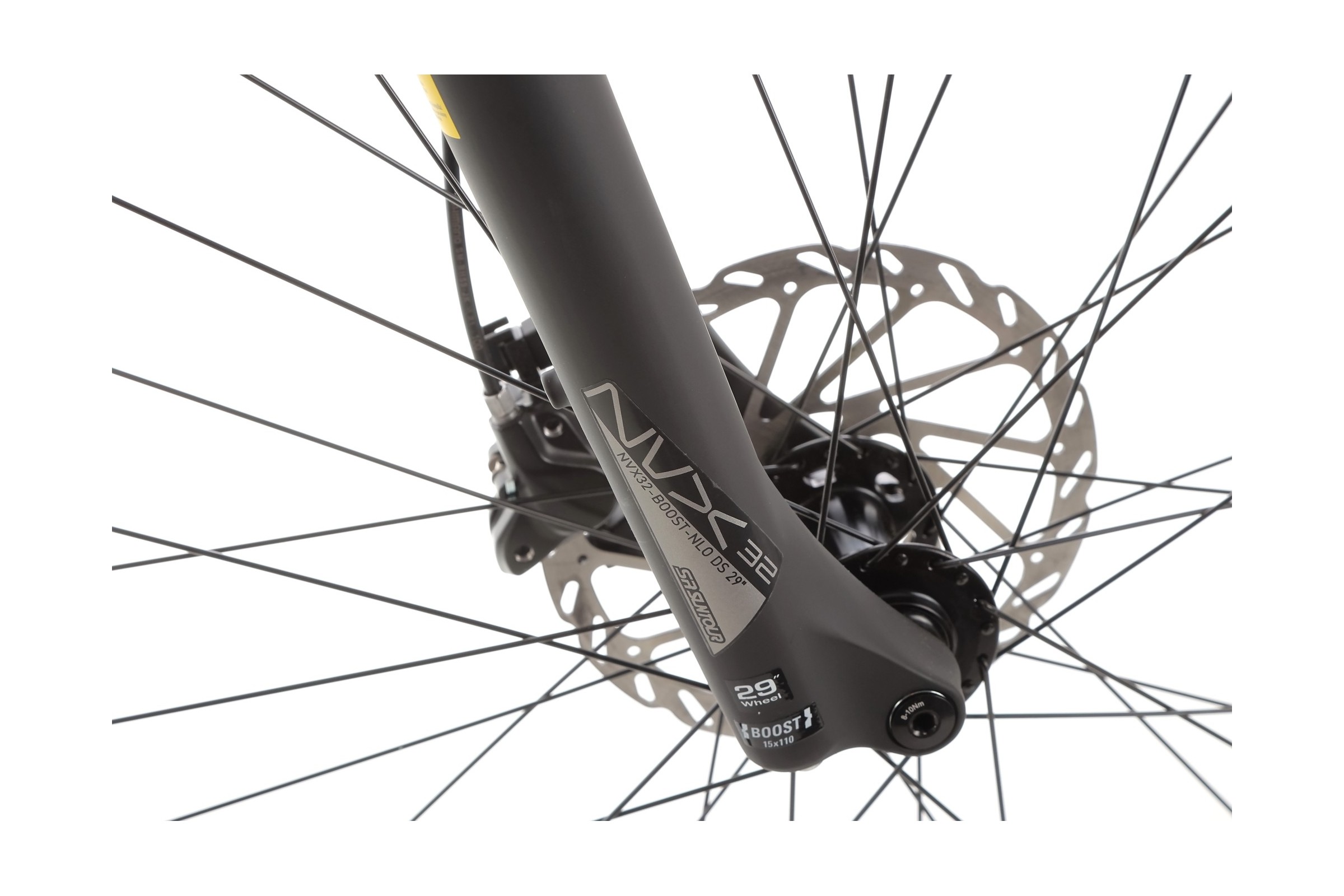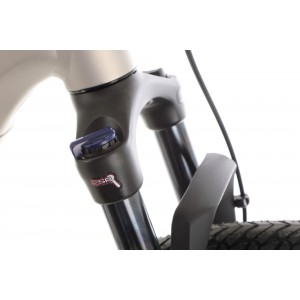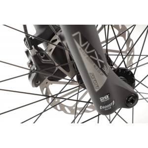 Przedni amortyzator SR Suntour NVX32-Boost-NLO-DS o skoku 80 mm doskonale tłumi nierówności terenu. Jest to model z systemem Boost, co zwiększa sztywność konstrukcji, szczególnie przy bardziej dynamicznej jeździe.