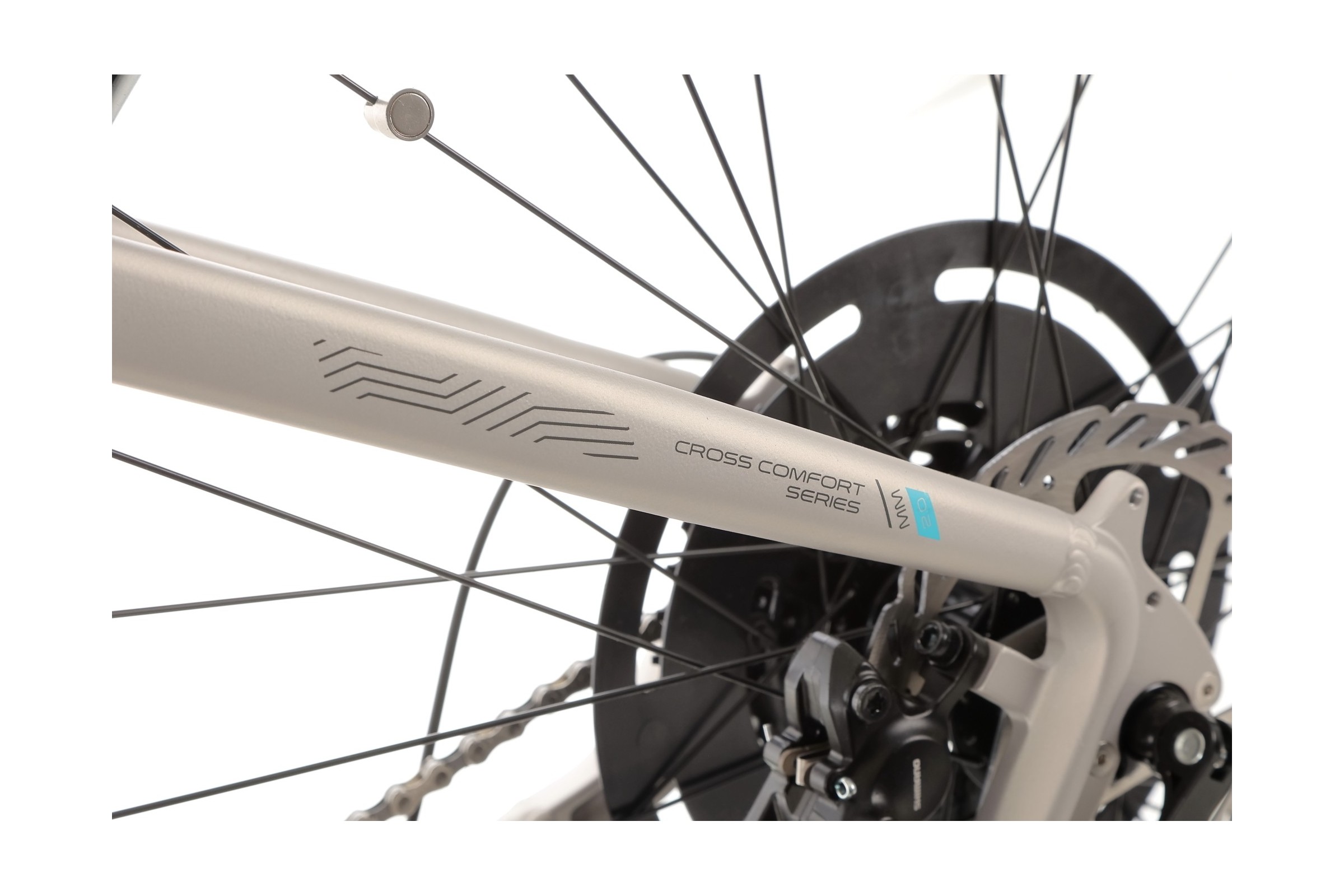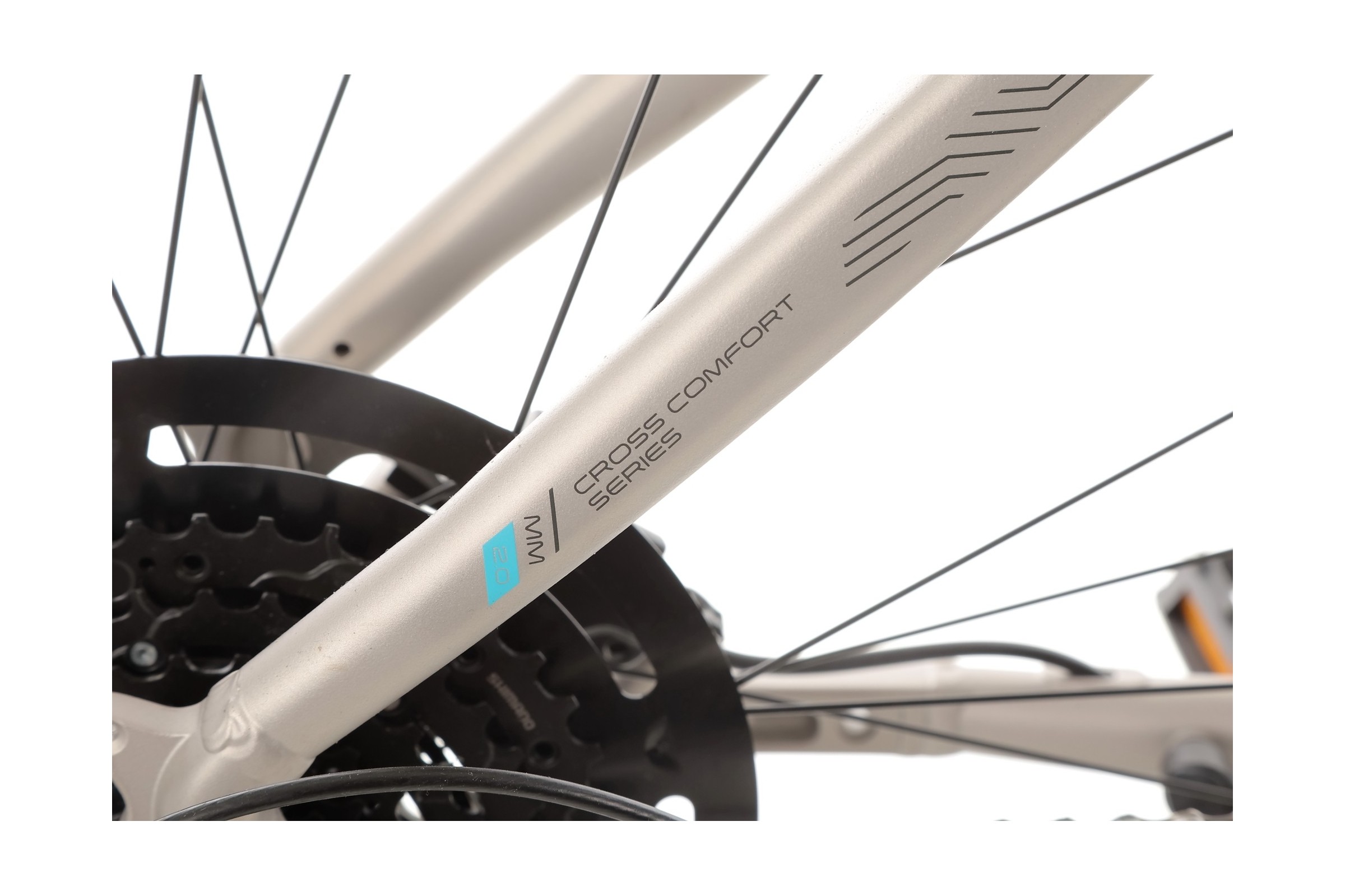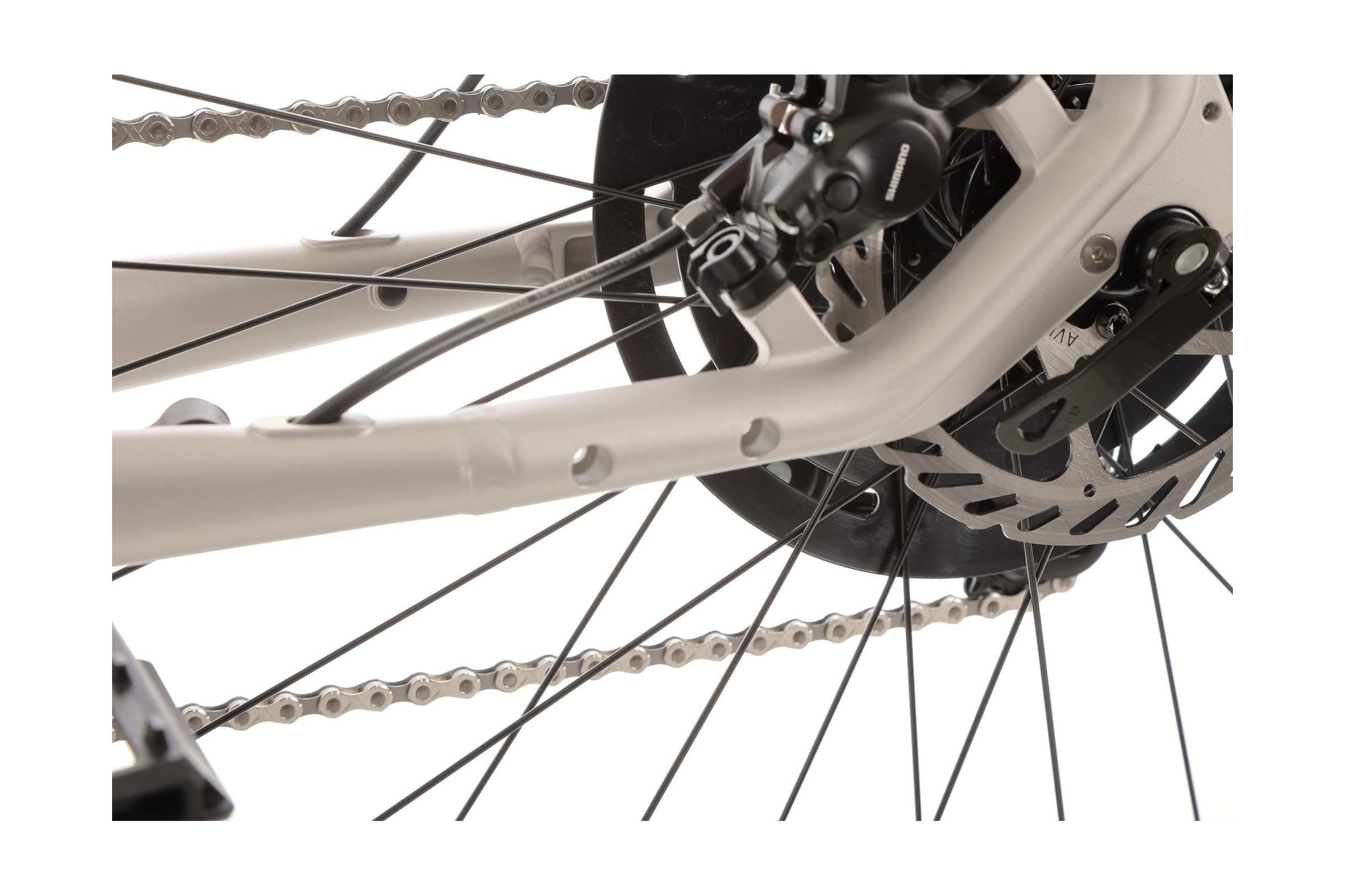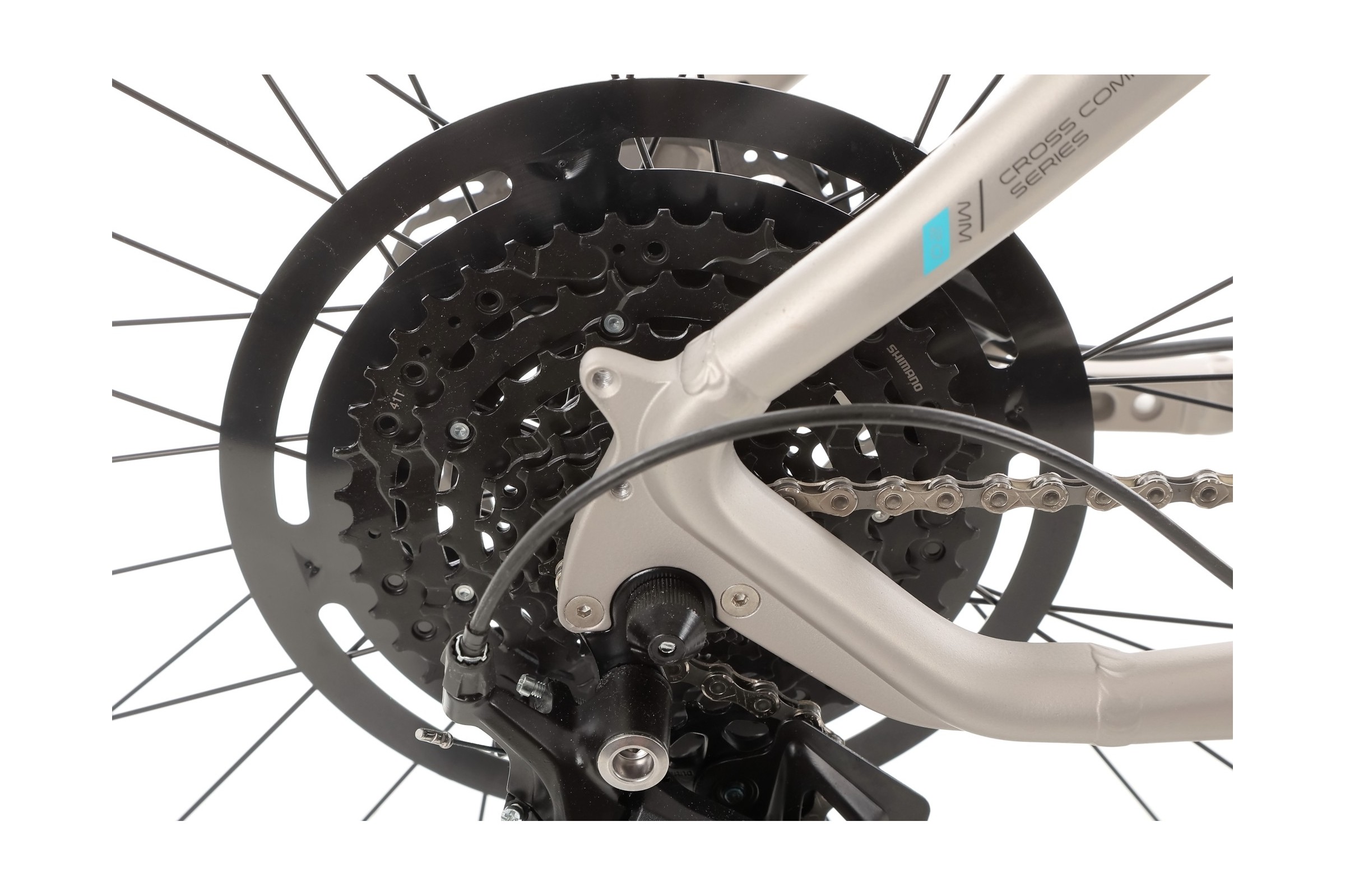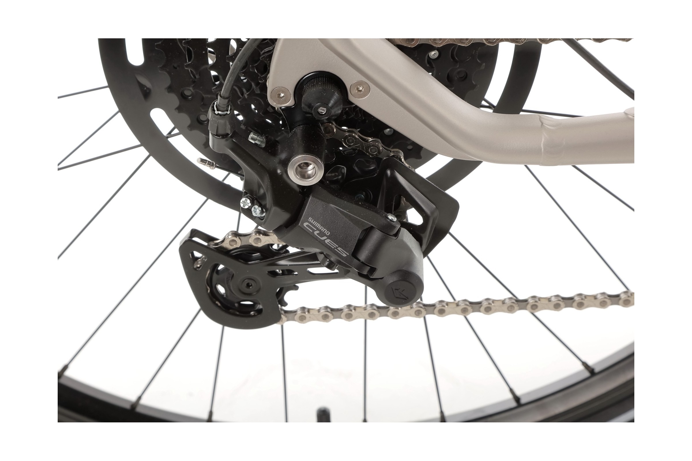 Rower posiada napęd Shimano Cues w konfiguracji 1x9. Tylna przerzutka Shimano Cues RD-U4000 oraz kaseta Shimano Cues CS-LG300-9 (11-41T) gwarantują płynną zmianę biegów oraz trwałość komponentów, nawet przy intensywnym użytkowaniu.