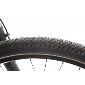 Rower wyposażono w 28-calowe koła z aluminiowymi dwukomorowymi obręczami RMT Components. Taka konstrukcja zapewnia wytrzymałość oraz stabilność podczas jazdy, nawet na trudniejszych nawierzchniach. Opony Michelin Protek Cross o rozmiarze 28x1.75 gwarantują świetną przyczepność zarówno na asfalcie, jak i na szutrowych ścieżkach. Dzięki temu rower jest wszechstronny i sprawdzi się w różnych warunkach terenowych.