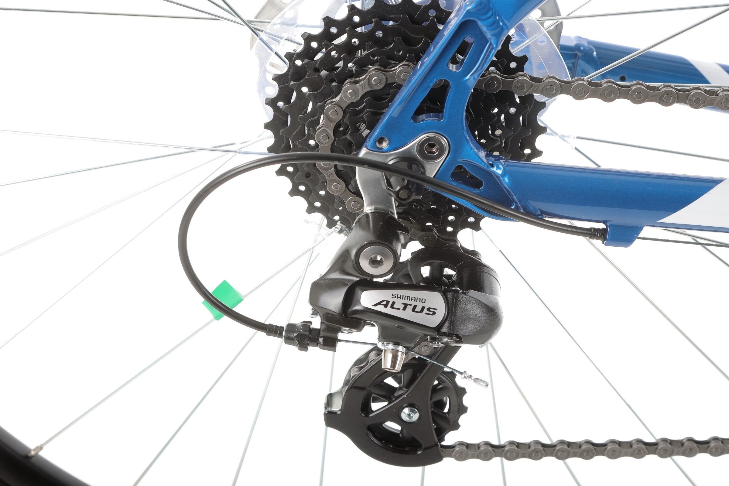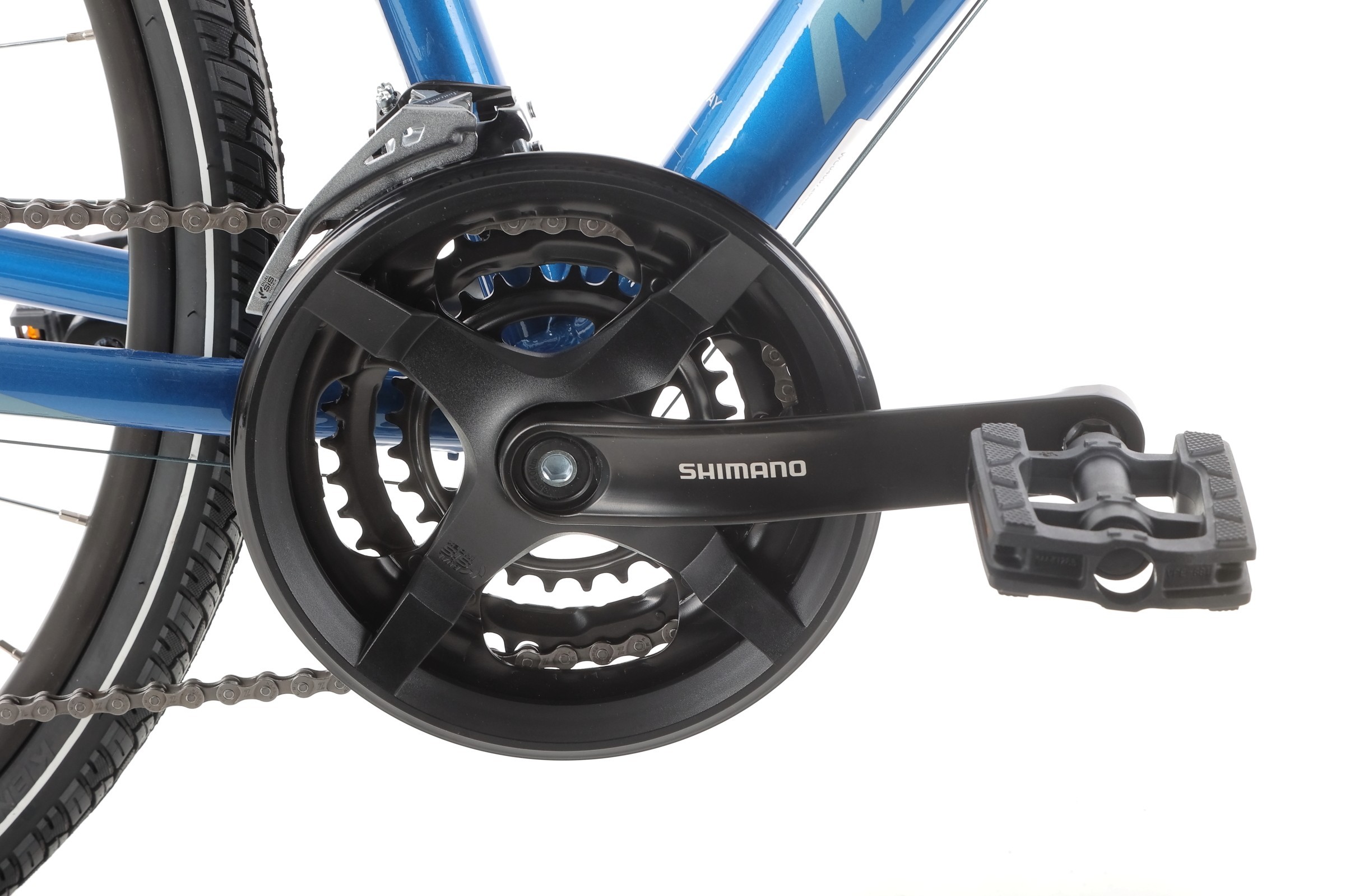 Za sprawne działanie napędu odpowiadają manetki Shimano ST-EF505 EZ-fire oraz przerzutki Shimano. Dzięki mechanizmowi korbowemu Shimano TY301 (48-38-28) i kasetcie Sunrace CSM668-8s (11-32) rower oferuje szeroki zakres przełożeń, co pozwala łatwo pokonywać zarówno płaskie odcinki, jak i strome podjazdy.
