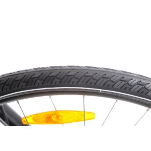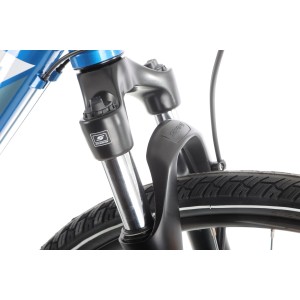 Przedni amortyzator SR Suntour NEX Coil o skoku 63 mm skutecznie tłumi nierówności, zapewniając płynną i komfortową jazdę zarówno po miejskich ścieżkach, jak i leśnych duktach. To idealne rozwiązanie dla osób, które cenią sobie wygodę podczas dłuższych wycieczek i codziennych dojazdów.