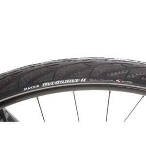 Na rowerze zamontowano koła 28” z obręczami MERIDA COMP TK 20 IWR oraz piastami Shimano TX505. Opony Maxxis Overdrive II 700x40C ze zwijaną konstrukcją, odblaskowym paskiem i technologią Silkworm zapewniają świetną przyczepność, niskie opory toczenia oraz bezpieczeństwo podczas jazdy po zmroku.