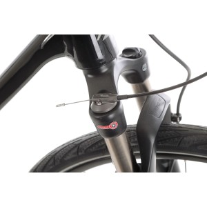 W modelu Crossway 500 zastosowano hydrauliczne hamulce tarczowe Shimano MT-400 z tarczami Shimano RT10 o średnicy 160 mm. Takie połączenie gwarantuje pewne i skuteczne hamowanie nawet podczas jazdy w deszczu czy w trudniejszym terenie, dając Ci pełną kontrolę nad rowerem.