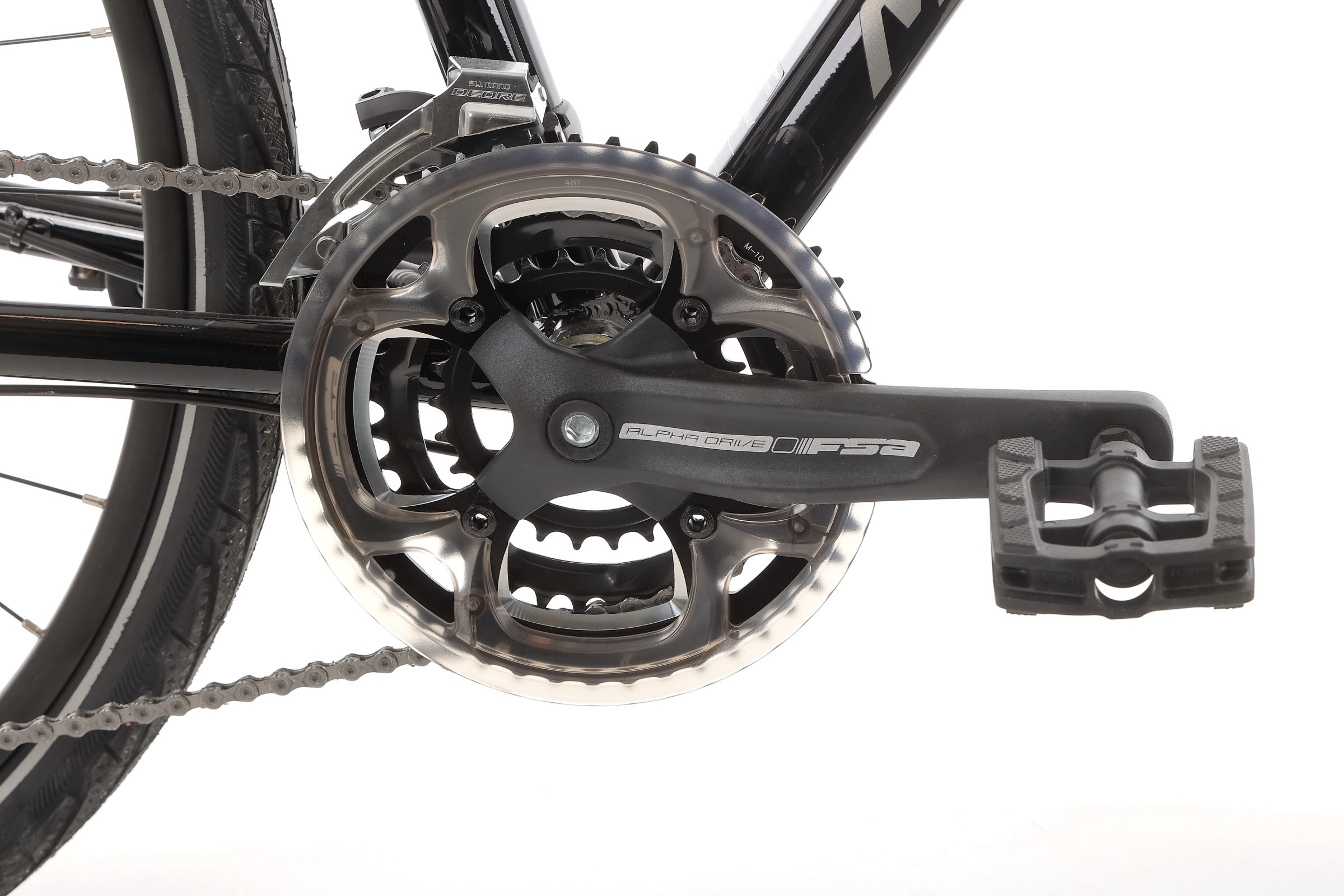 Rower wyposażono w napęd Shimano Deore 3x10 z szerokim zakresem przełożeń (kaseta Shimano HG500 11-34 10S i mechanizm korbowy FSA Alfa Drive 48-36-26). Pozwala to na płynne i precyzyjne zmiany biegów, dzięki czemu bez problemu pokonasz zarówno strome podjazdy, jak i szybkie odcinki po płaskim terenie.