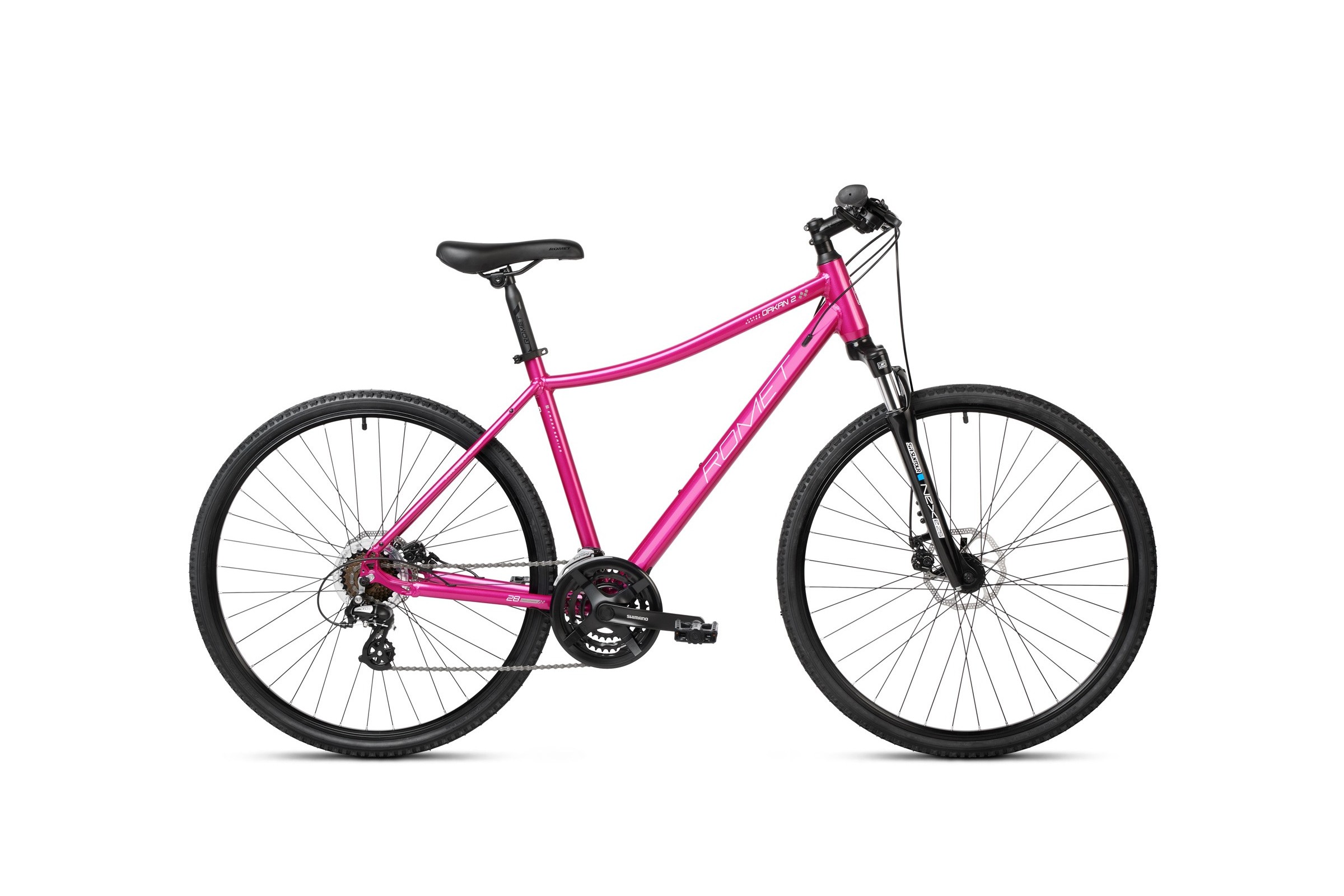 Rower crossowy Romet Orkan 2 D 2024 - różowo-biało-jasnografitowy