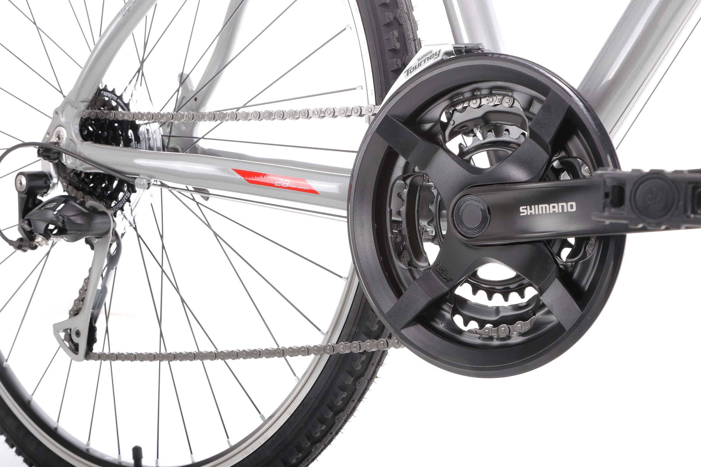 - 24 rzędowy napęd oparty na przerzutkach Shimano Alivio RD-T4000 oraz Shimano FD-TY510, który pozwoli na dynamiczną jazdę zarówno w mieście jak i na pozamiejskich szutrach