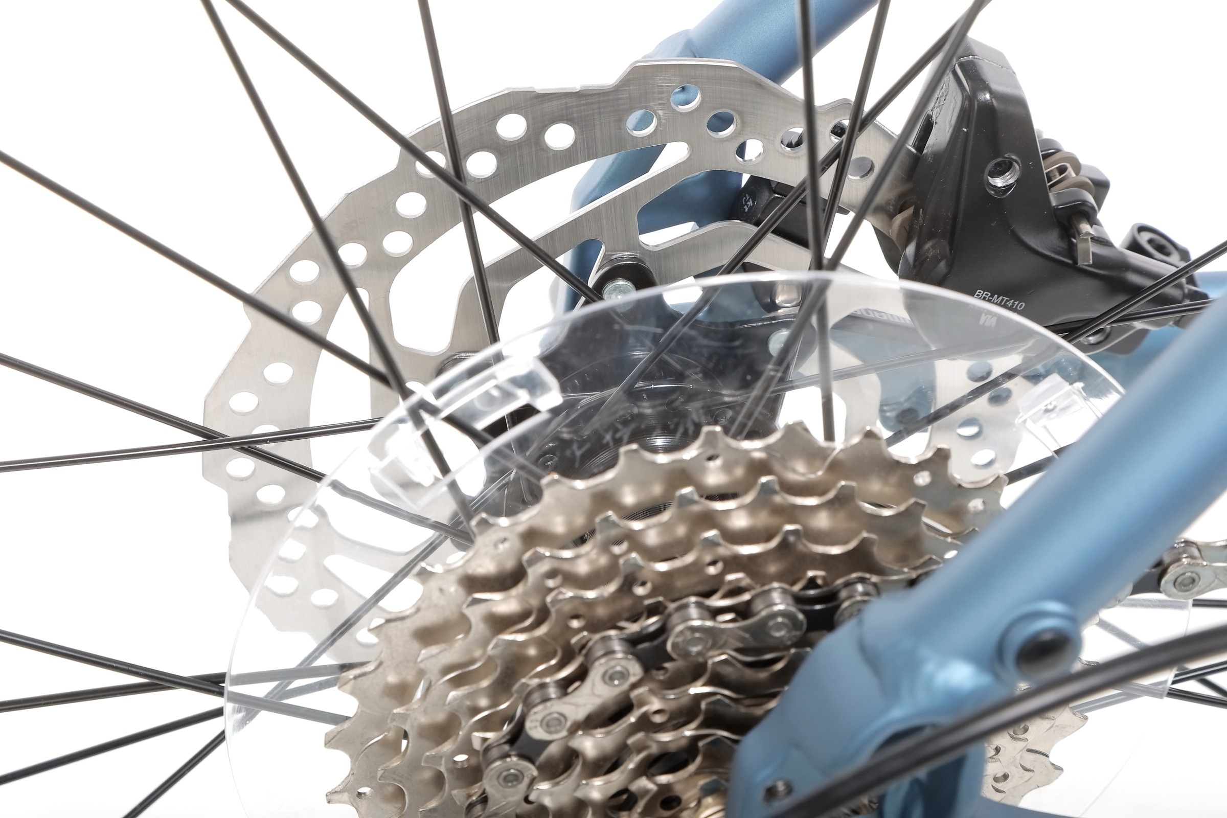 Hydrauliczne hamulce tarczowe Shimano BL-MT410 w połączeniu z tarczami Shimano SM-RT10 (160 mm) oferują wyjątkową siłę hamowania i precyzję. Dzięki nim rowerzysta może czuć się pewnie nawet podczas gwałtownego hamowania w trudnych warunkach pogodowych.