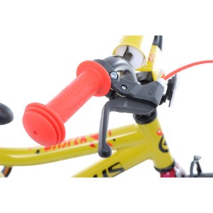 Stalowy mechanizm korbowy (32T) w połączeniu z wolnobiegiem wyposażonym w pojedynczą zębatkę 16T tworzy prosty i niezawodny układ napędowy, który minimalizuje konieczność konserwacji. Dodatkowo, solidny łańcuch KMC Z510 zapewnia trwałość i odporność na zużycie. Całość została zaprojektowana tak, aby rower był maksymalnie trwały, dzięki czemu dziecko może skupić się na radości z jazdy, a rodzice nie muszą martwić się o częste regulacje czy naprawy.