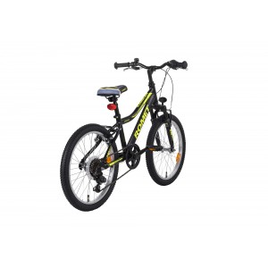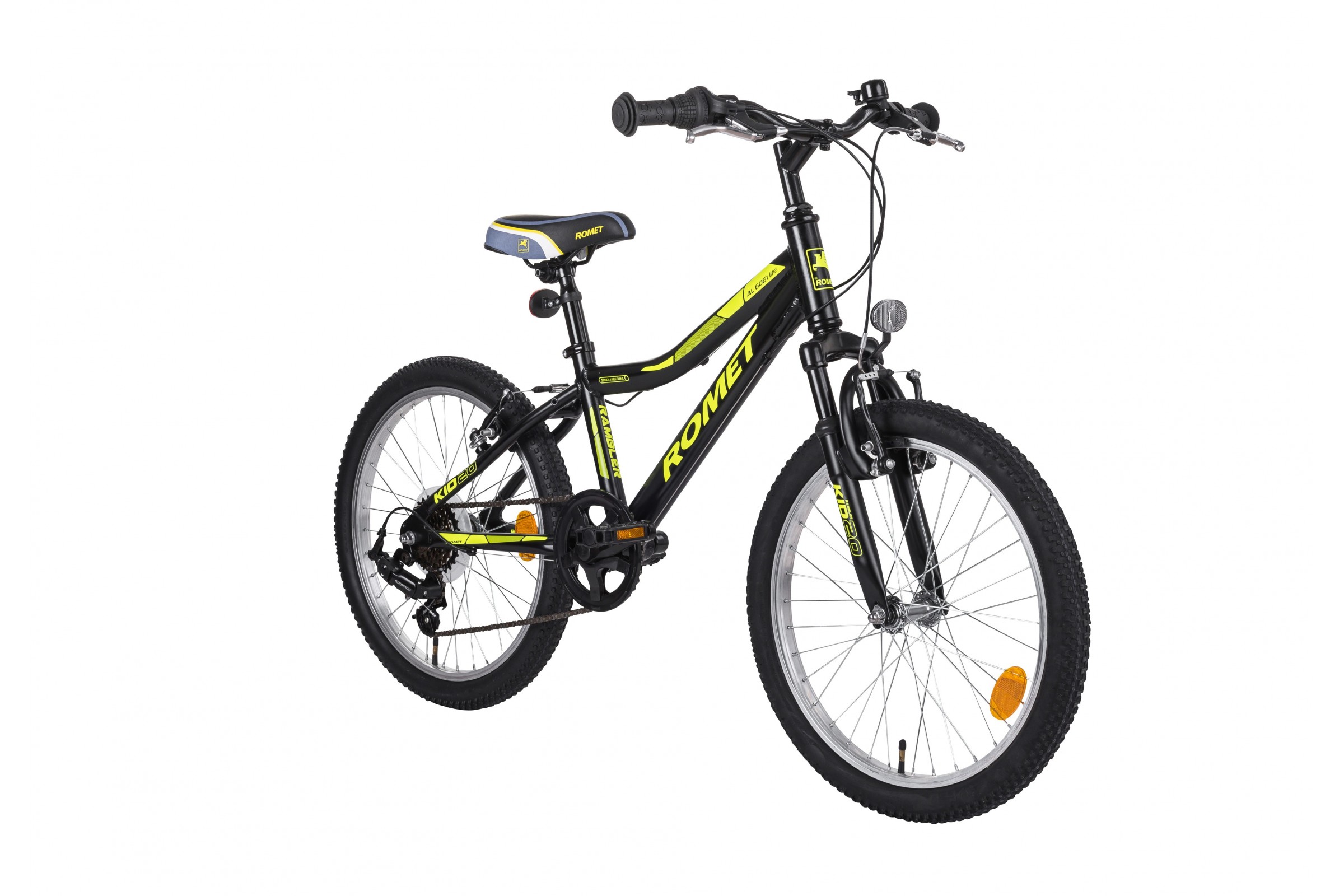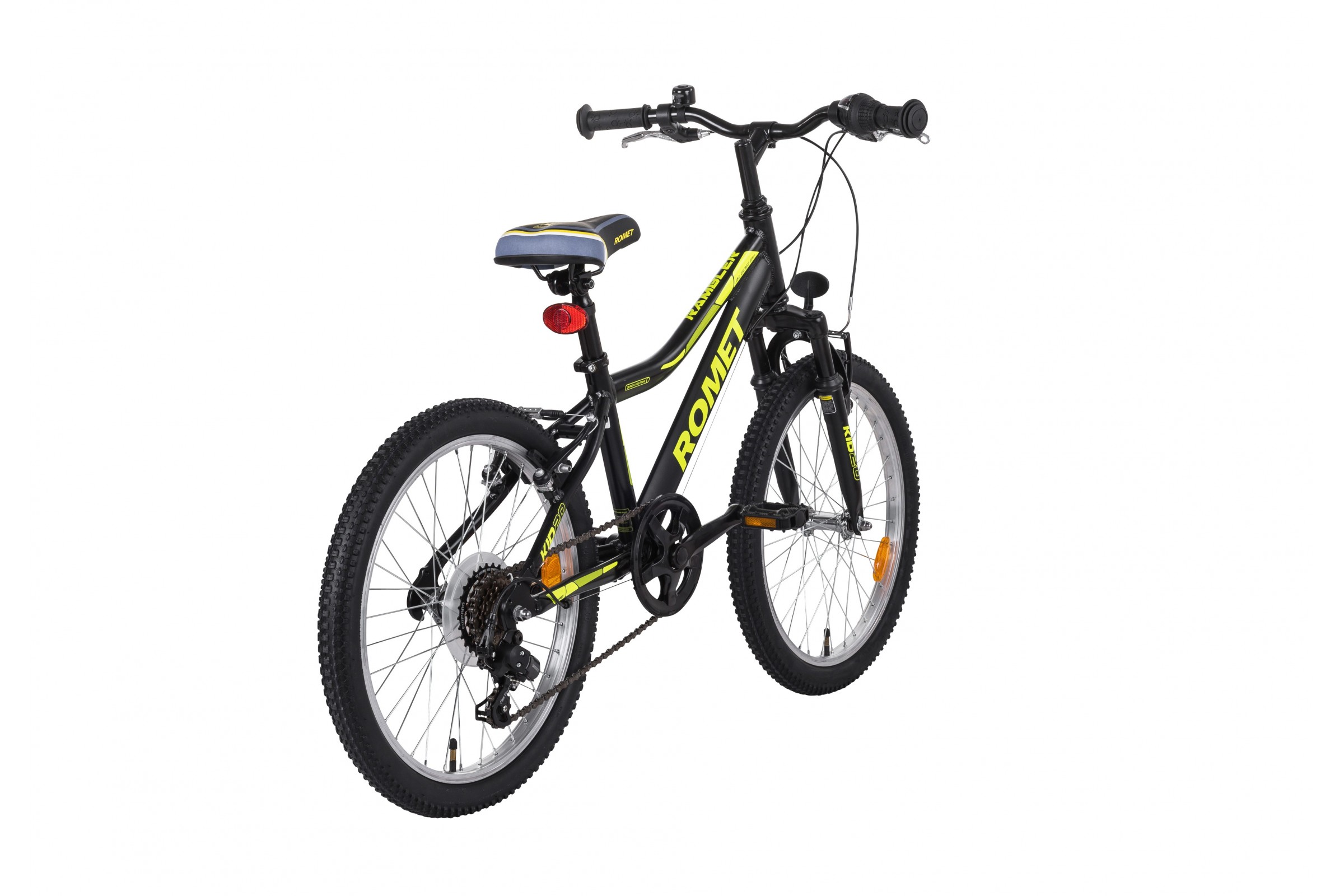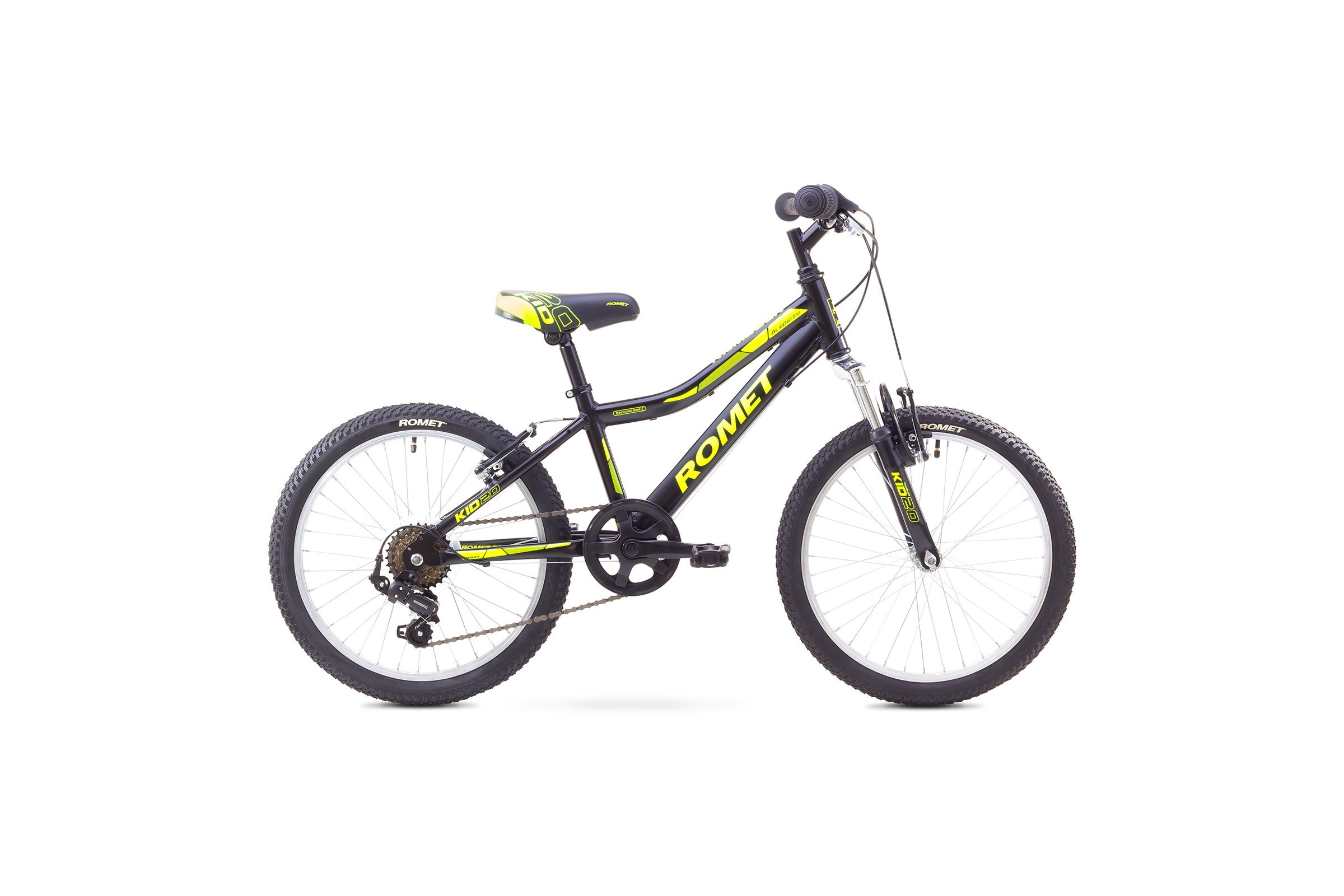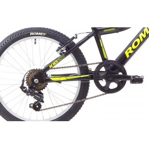 Romet Rambler 20 Kid to wysokiej jakości aluminiowy rower górski przeznaczony dla użytkowników od 5 do 9 roku życia. Rowerek został zbudowany w oparciu o aluminiową lekką ramę, zaprojektowaną tak aby ułatwić dziecku wsiadanie i zsiadanie z rowerku (niski przekrok-52cm). Rower jest wyposażony w widelec amortyzowany oraz wygodne siodło. Za zmianę biegów odpowiada osprzęt Shimano (przerzutka, manetka obrotowa i wolnobieg) dzięki czemu dziecko jest w stanie dostosować przełożenie do aktualnej potrzeby.