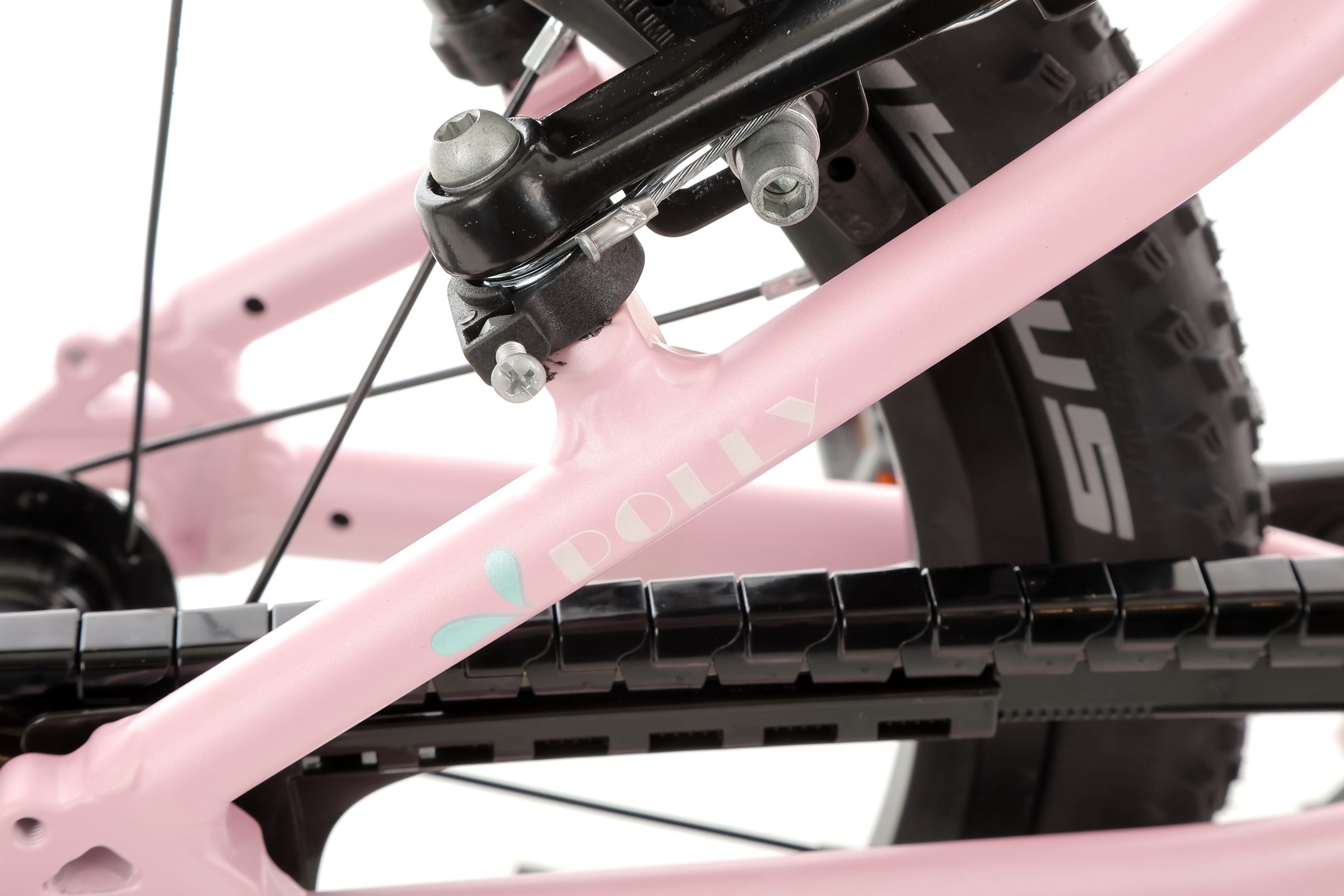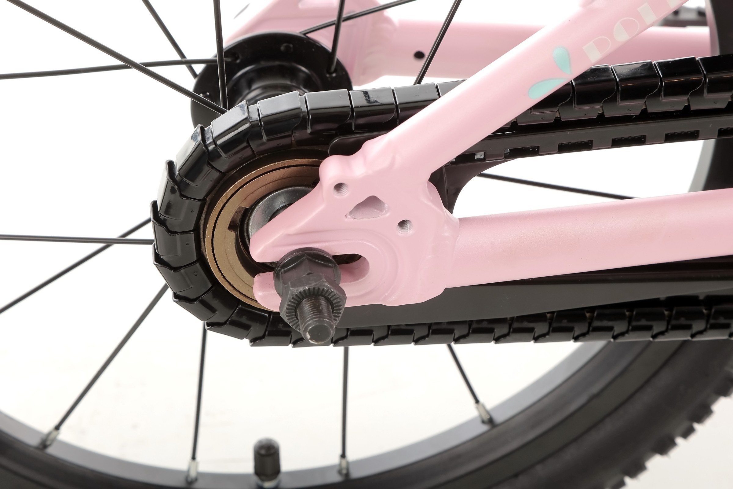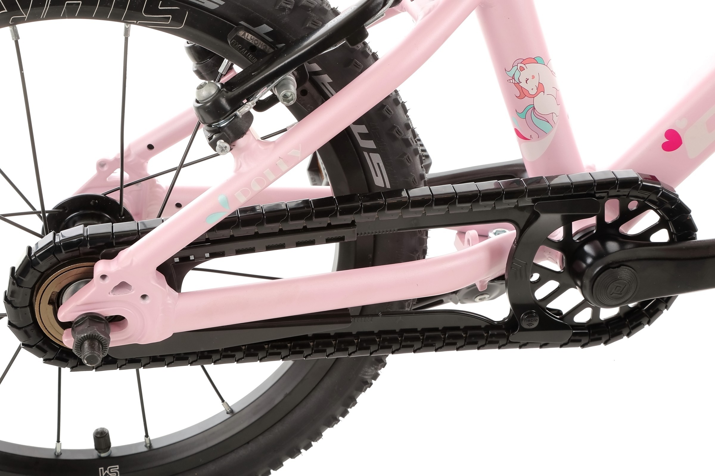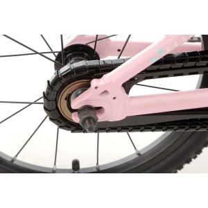 W rowerze zastosowano wysokiej klasy łożyska maszynowe w suporcie, co sprawia, że pedałowanie odbywa się bez zbędnych oporów. Aluminiowy mechanizm korbowy Prowheel (102 mm) jest idealnie dopasowany do długości nóg dziecka, a wytrzymały łańcuch KMC współpracuje z prostym w obsłudze napędem jednorzędowym, co eliminuje ryzyko spadania łańcucha.