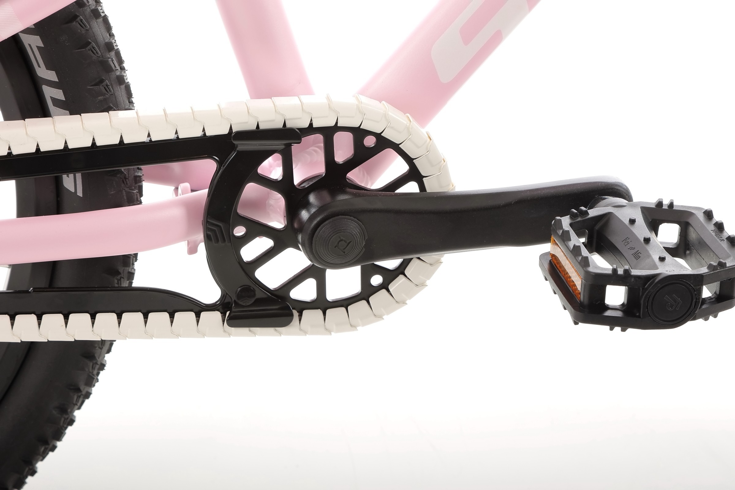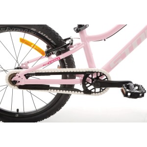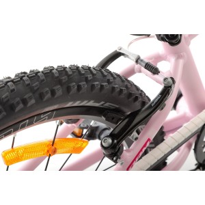 Sercem roweru jest prosty i niezawodny układ napędowy. Aluminiowa korba o optymalnej długości 102 mm ułatwia pedałowanie bez nadmiernego wysiłku, a jednorzędowy wolnobieg eliminuje stres związany ze zmianą biegów. Dodatkowym atutem jest wysokiej jakości łańcuch KMC, osłonięty specjalną obudową – dzięki temu spodnie dziecka pozostaną czyste, a jazda będzie w pełni bezpieczna.