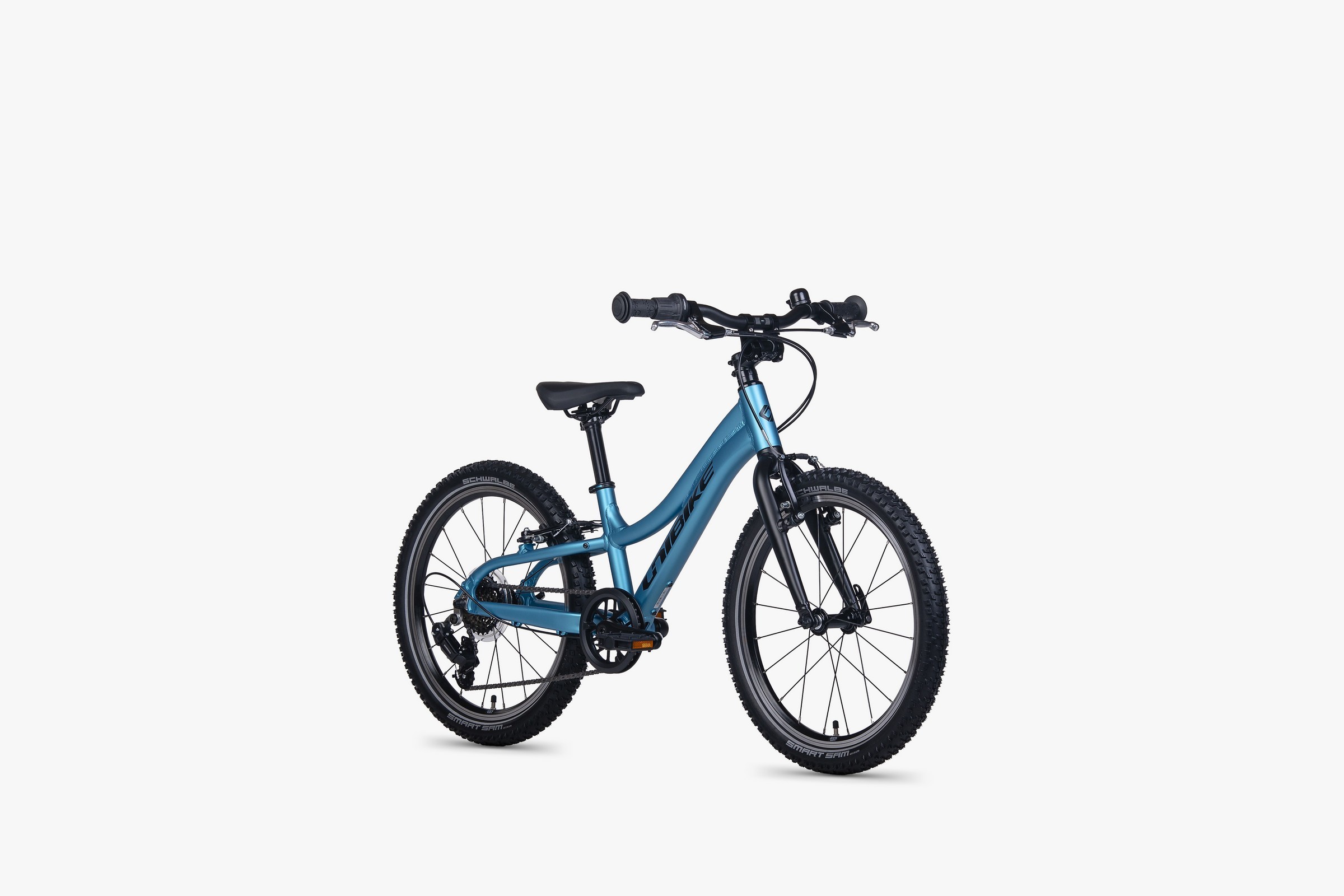 Kontakt z podłożem zapewniają 20-calowe koła oparte na lekkich piastach KT Quando i mocnych obręczach. Wyróżnikiem tego modelu są jednak zwijane opony Schwalbe Smart Sam 20x1.90. To profesjonalne ogumienie, które dzięki gęstemu splotowi jest lżejsze od standardowych opon drutowych, a jego bieżnik gwarantuje świetną trakcję zarówno na leśnych ścieżkach, jak i miejskich chodnikach.