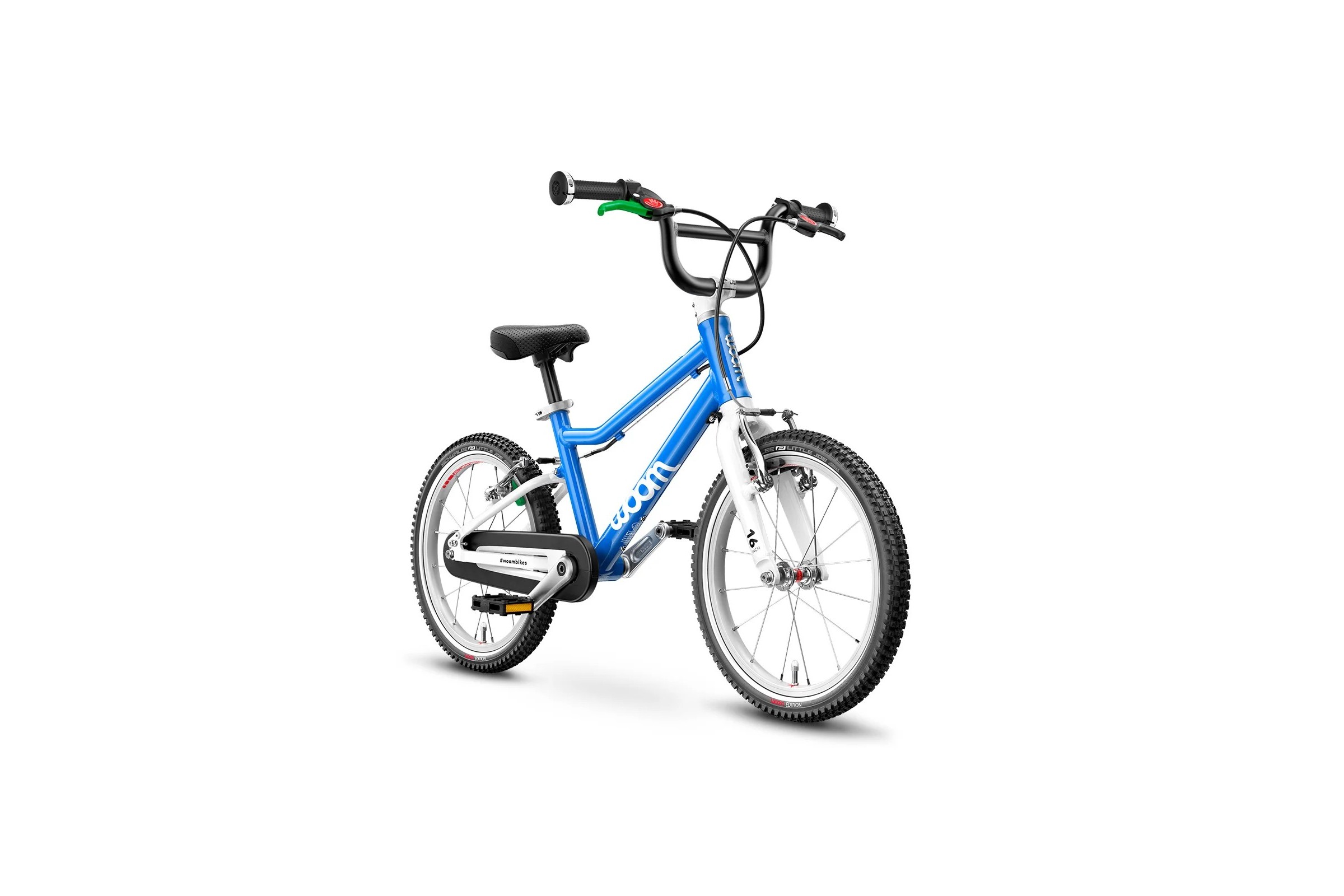 - zielony kolor dźwigni hamulca tylnego koła i zielone klocki pomagają dziecku rozróżnić przedni i tylny hamulec