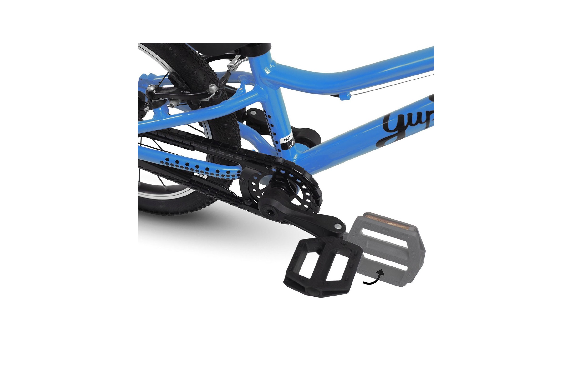Składane, platformowe pedały wykonane z wysokogatunkowego tworzywa są nie tylko lekkie, ale także wyjątkowo wygodne. Brak hamulca w pedałach sprawia, że dziecko może łatwiej ustawiać je do startu, co znacząco ułatwia naukę jazdy.