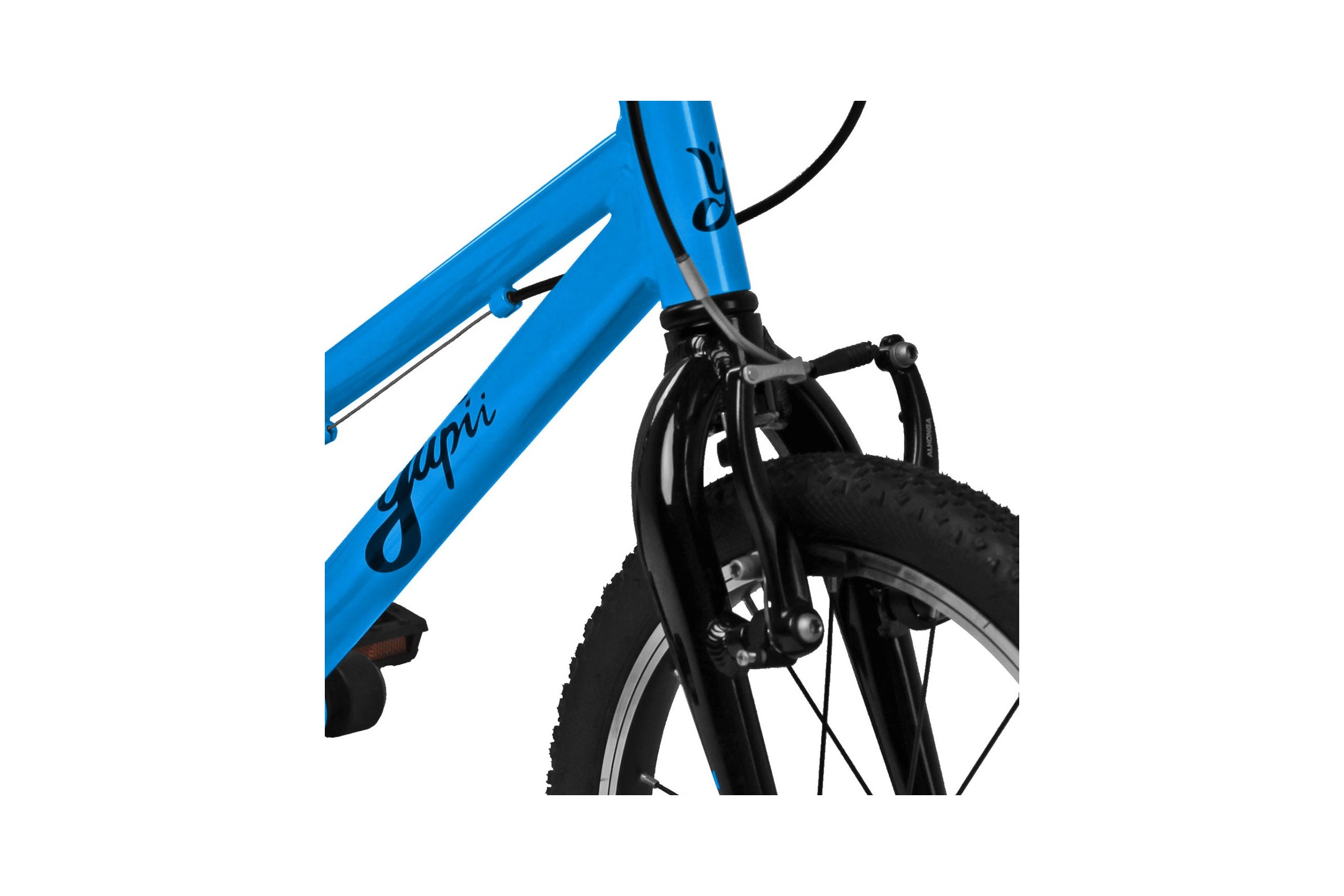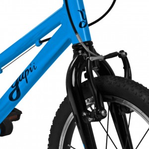 Yupii 16 posiada aluminiowe hamulce V-brake, zapewniające skuteczne i precyzyjne hamowanie. Ergonomiczne klamki, dopasowane do małych dłoni, ułatwiają naukę kontroli nad rowerem i zwiększają bezpieczeństwo jazdy.