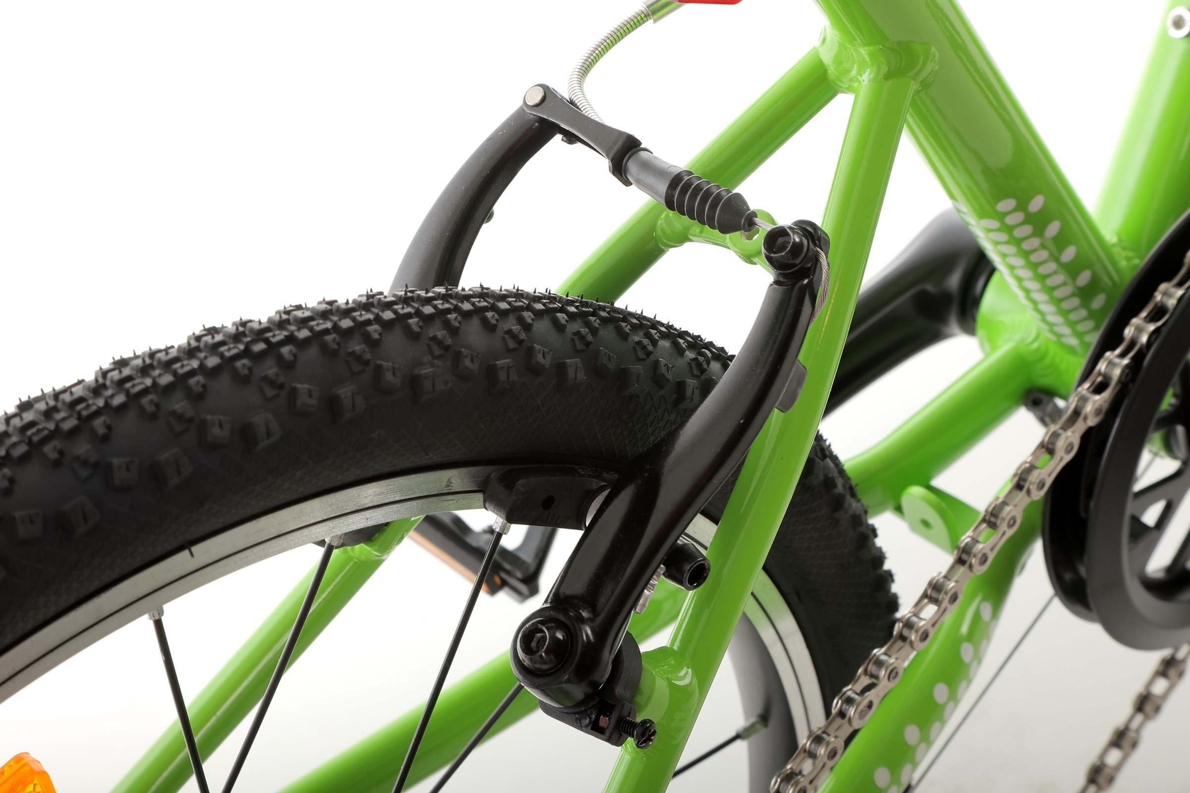 Rower wyposażony jest w aluminiowe hamulce typu V-brake, które zapewniają skuteczne i szybkie zatrzymywanie roweru. Dodatkowo, ergonomiczne chwyty hamulcowe zostały dostosowane do małych dłoni, co umożliwia łatwe i bezpieczne manewrowanie w trakcie jazdy.