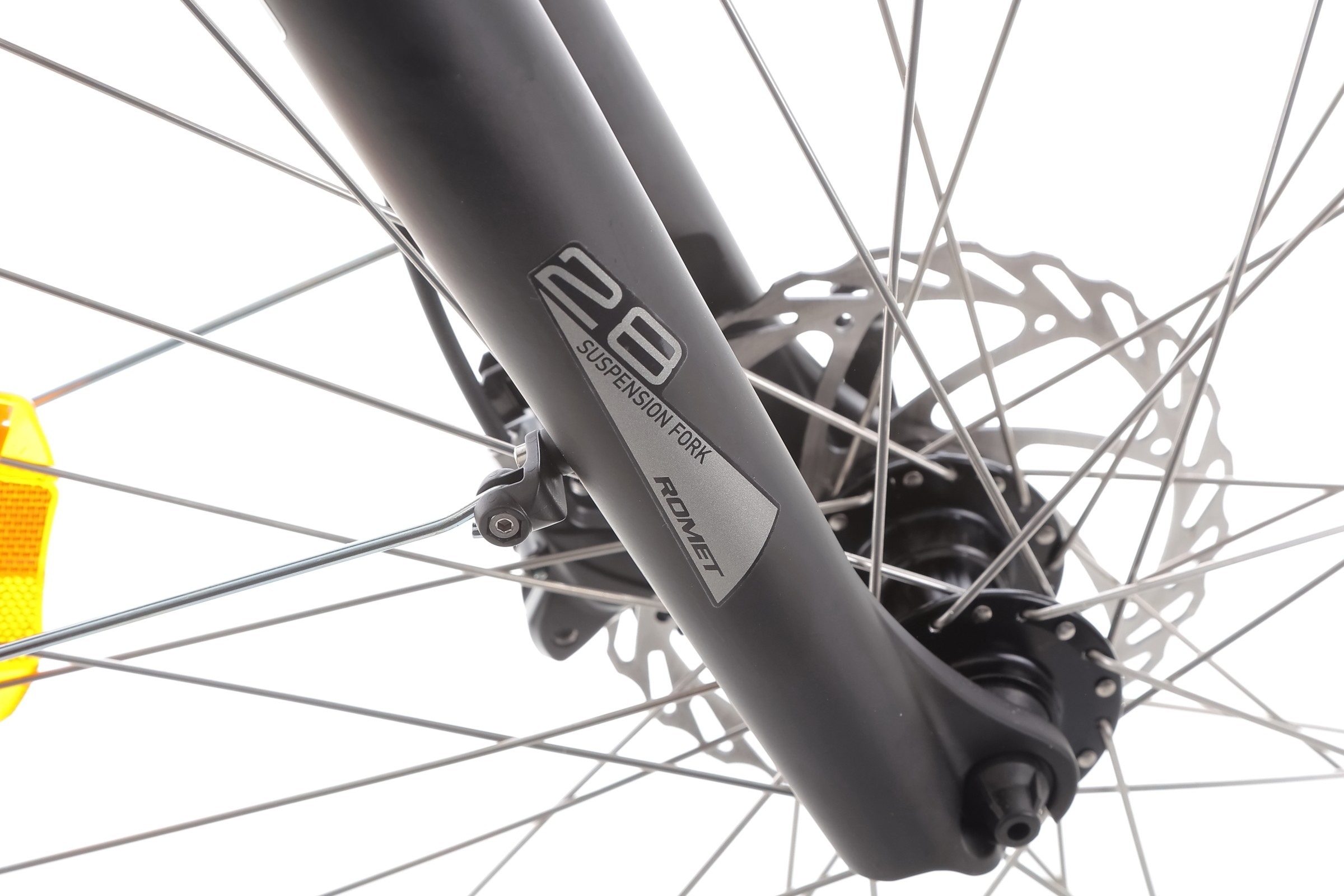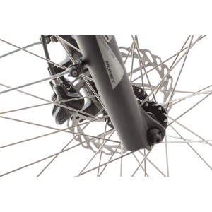 Amortyzowany widelec o skoku 100 mm skutecznie tłumi drgania i nierówności terenu, co przekłada się na komfortową i bezpieczną jazdę, nawet po trudniejszym podłożu.