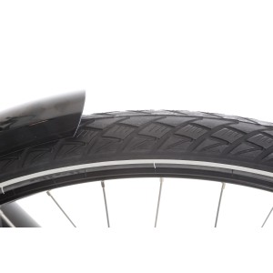Koła o średnicy 28 cali z dwukomorowymi aluminiowymi obręczami oraz oponami Wanda W3109 28x1.75" gwarantują stabilność, przyczepność i komfort jazdy na różnych nawierzchniach.