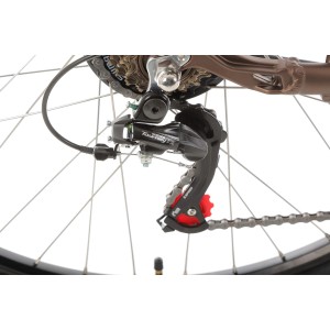 System napędowy oparty na przerzutce Shimano Tourney i 7-biegowym wolnobiegu MF-TZ500 sprawia, że dopasujesz przełożenie do swoich preferencji i terenu. Obsługa biegów jest niezwykle intuicyjna dzięki ergonomicznym manetkom Shimano Revoshift RS-35, które pozwalają na wygodne przełączanie biegów bez odrywania rąk od kierownicy.