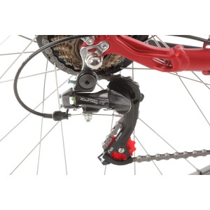 System napędowy oparty na przerzutce Shimano Tourney i 7-biegowym wolnobiegu MF-TZ500 sprawia, że dopasujesz przełożenie do swoich preferencji i terenu. Obsługa biegów jest niezwykle intuicyjna dzięki ergonomicznym manetkom Shimano Revoshift RS-35, które pozwalają na wygodne przełączanie biegów bez odrywania rąk od kierownicy.