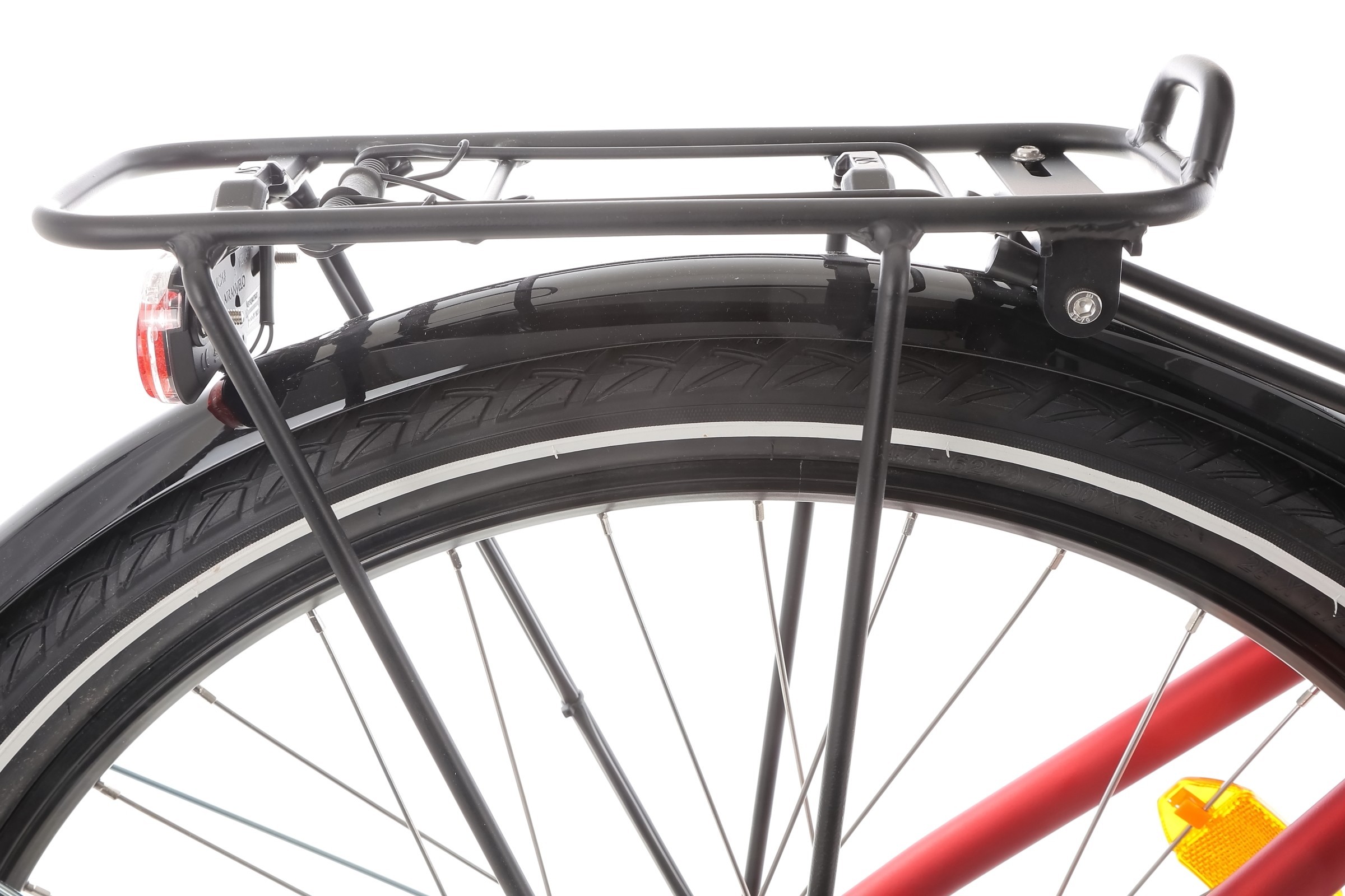 Koła o średnicy 28 cali z dwukomorowymi aluminiowymi obręczami oraz oponami Wanda W3109 28x1.75" gwarantują stabilność, przyczepność i komfort jazdy na różnych nawierzchniach.