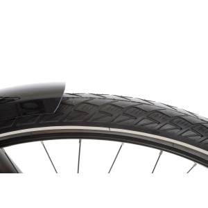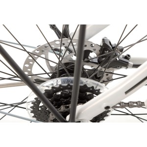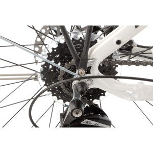 Rower wyposażony jest w koła 28", które zapewniają stabilność i łatwość w pokonywaniu różnych nawierzchni. Aluminiowe dwukomorowe obręcze są zarówno lekkie, jak i trwałe, dzięki czemu rower jest gotowy na długie i wymagające trasy.