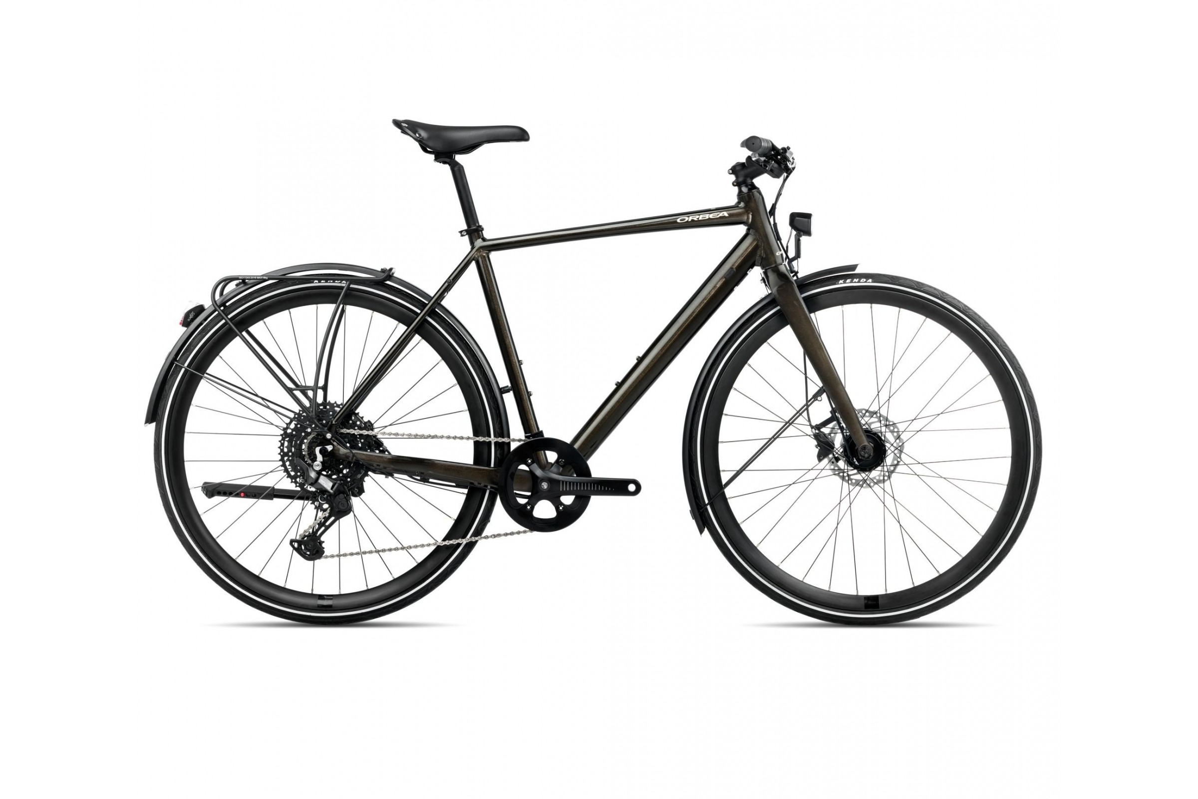 Aluminiowe, wytrzymałe koła 700c z 32 szprychami oraz opony Kenda K1067 700x38C wyposażone w odblaski i warstwę antyprzebiciową zapewniają stabilność, bezpieczeństwo oraz doskonałą przyczepność na miejskich ulicach i ścieżkach rowerowych.