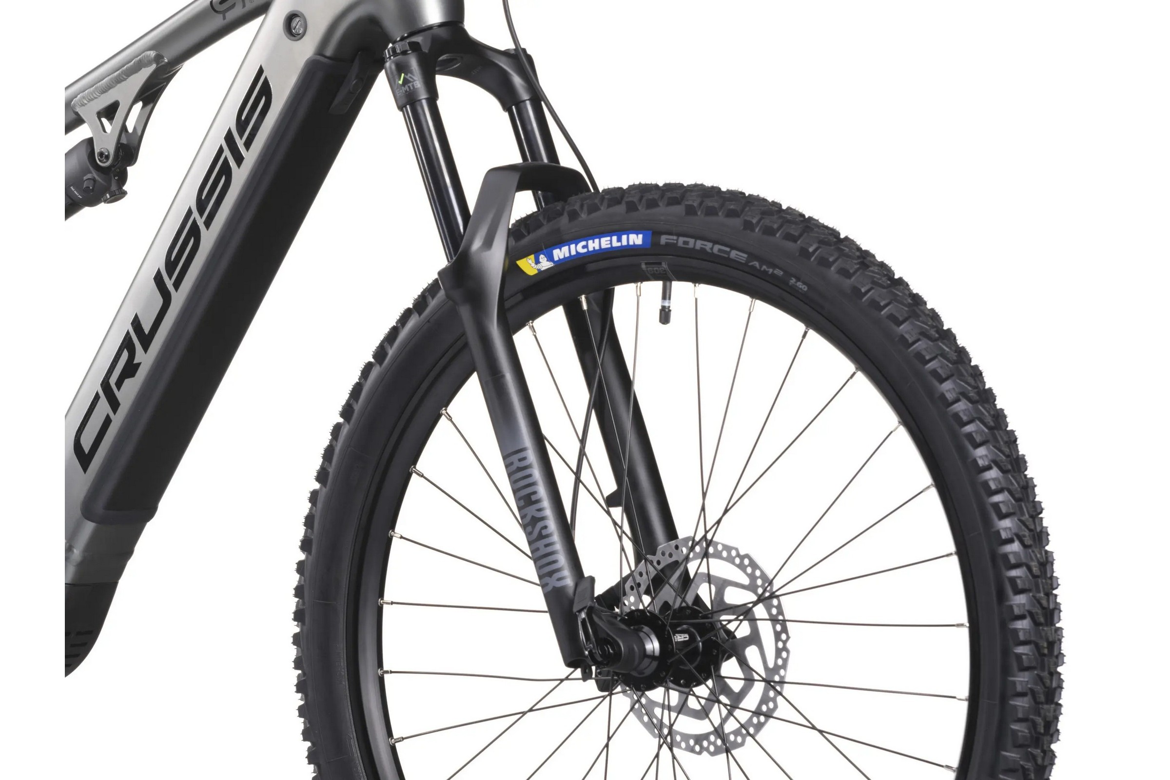 Mocne, dwukomorowe obręcze CRUSSIS 29" (szerokość 30 mm) kręcą się na wytrzymałych piastach na sztywnych osiach BOOST (przód 15x110 mm, tył 12x148 mm). Aby zapewnić idealne trzymanie się nawierzchni, zastosowano agresywne i cenione opony MICHELIN Force AM2 Competition Line TS TLR (29x2,60).