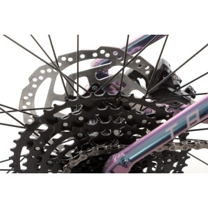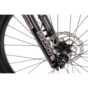 Z przodu znajdziesz powietrzny amortyzator SR SUNTOUR Raidon 34 LOR DS z 120 mm skoku i sztywną osią 15 mm Boost, co zapewnia nie tylko świetne tłumienie drgań, ale też precyzję prowadzenia nawet w najbardziej wymagającym terenie. To rozwiązanie, które pokochasz na technicznych zjazdach i kamienistych podjazdach.