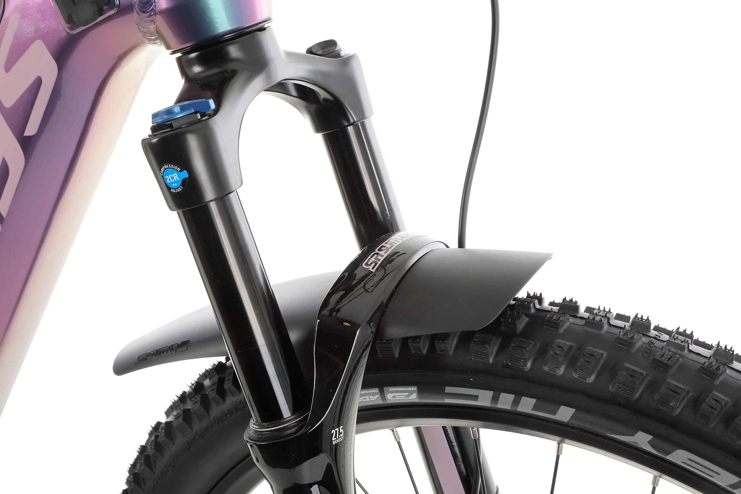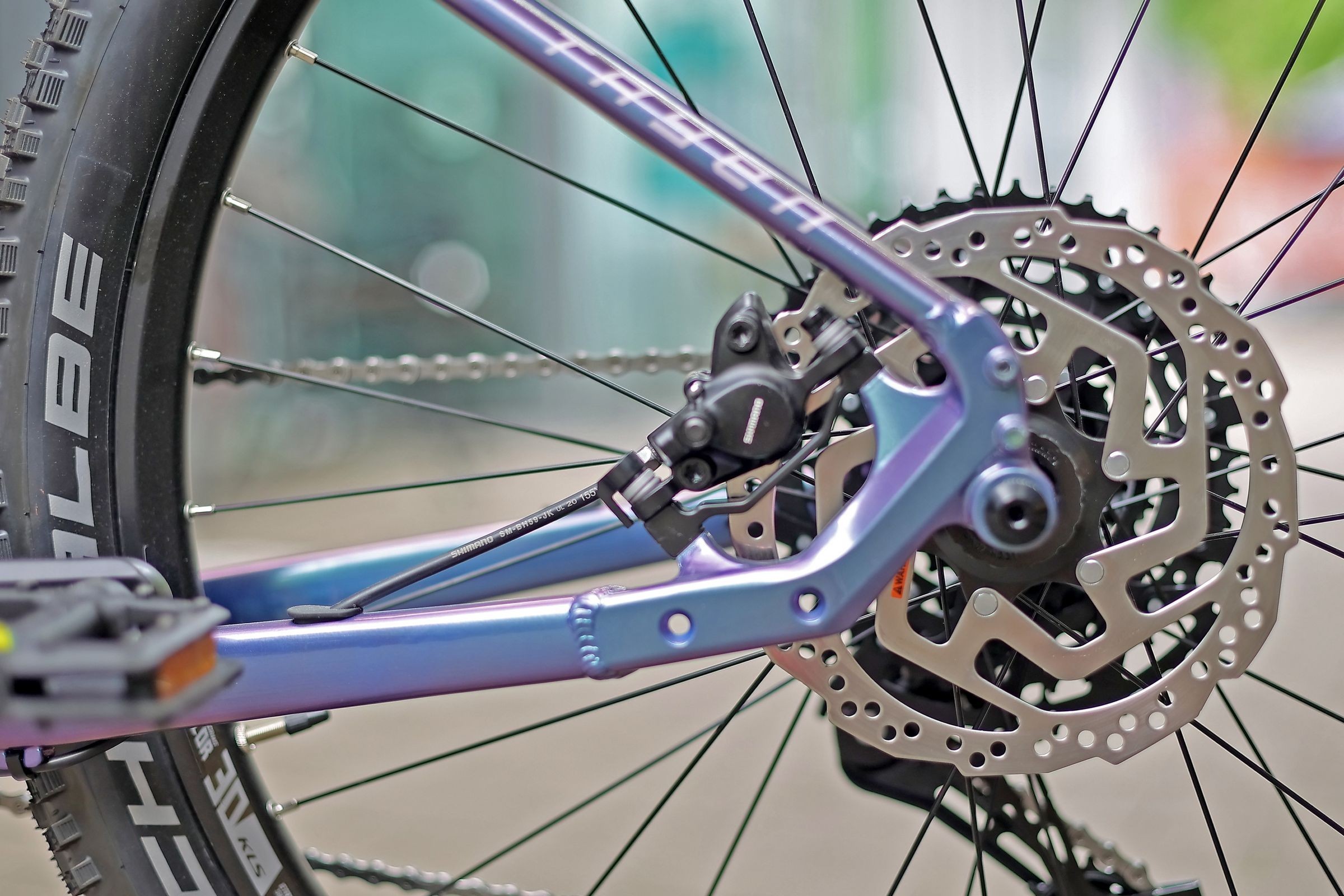 Rower porusza się na kołach 27,5", co daje idealny kompromis między zwrotnością a stabilnością. Opony SCHWALBE Nobby Nic Performance 27.5"x2.60" z mieszanką ADDIX to sprawdzony wybór do jazdy terenowej – oferują doskonałą przyczepność, trwałość i niski opór toczenia.
