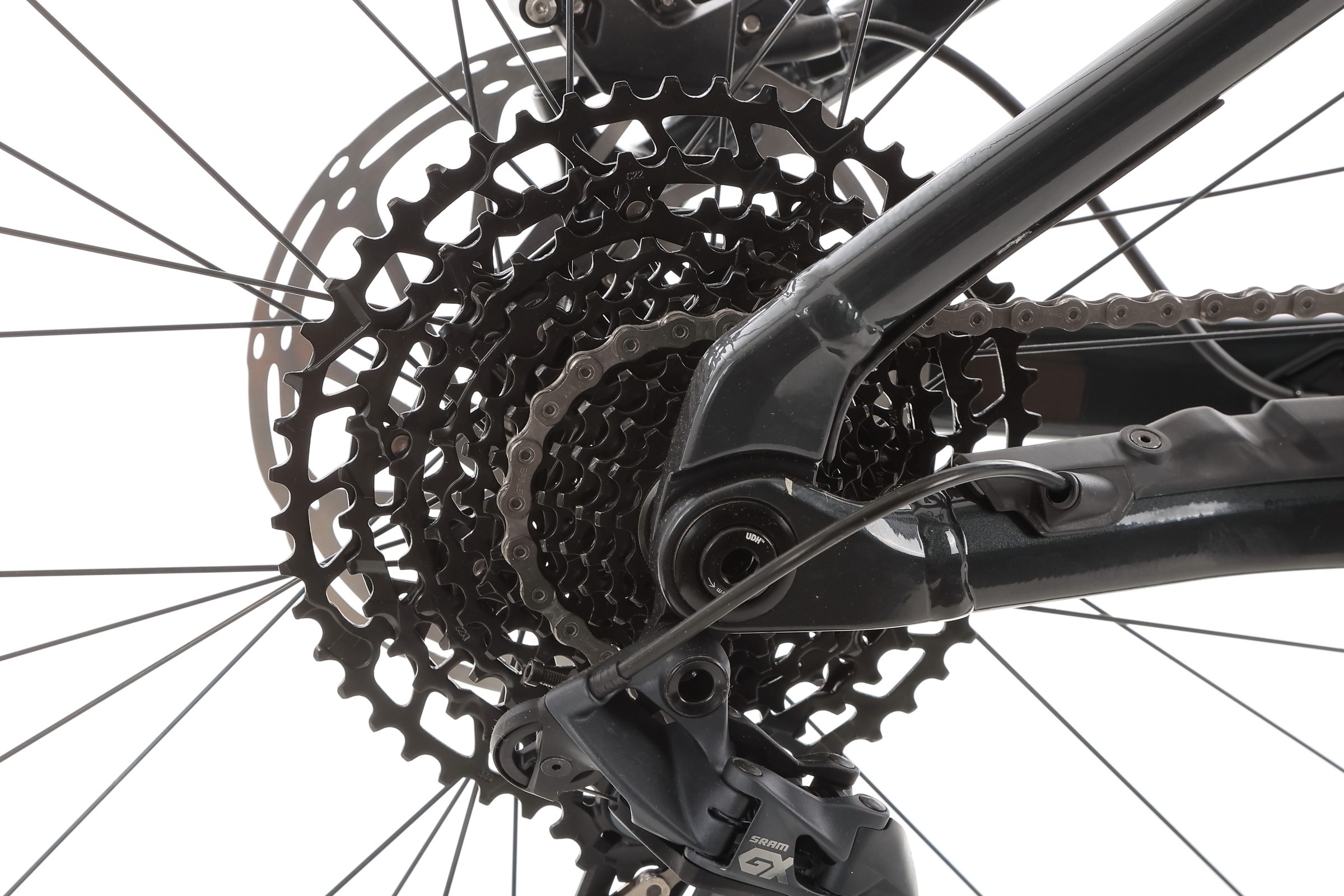 Precyzyjna przerzutka Sram GX Eagle Lunar współpracuje z kasetą Sram PG-1210 Eagle 11-50T i oferuje aż 12 biegów, co pozwala idealnie dobrać kadencję niezależnie od ukształtowania terenu. Solidny mechanizm korbowy Sram Steel 36T/e*thirteen Plus Alloy oraz wytrzymały łańcuch Sram NX Eagle gwarantują, że napęd poradzi sobie nawet w błocie czy piasku.