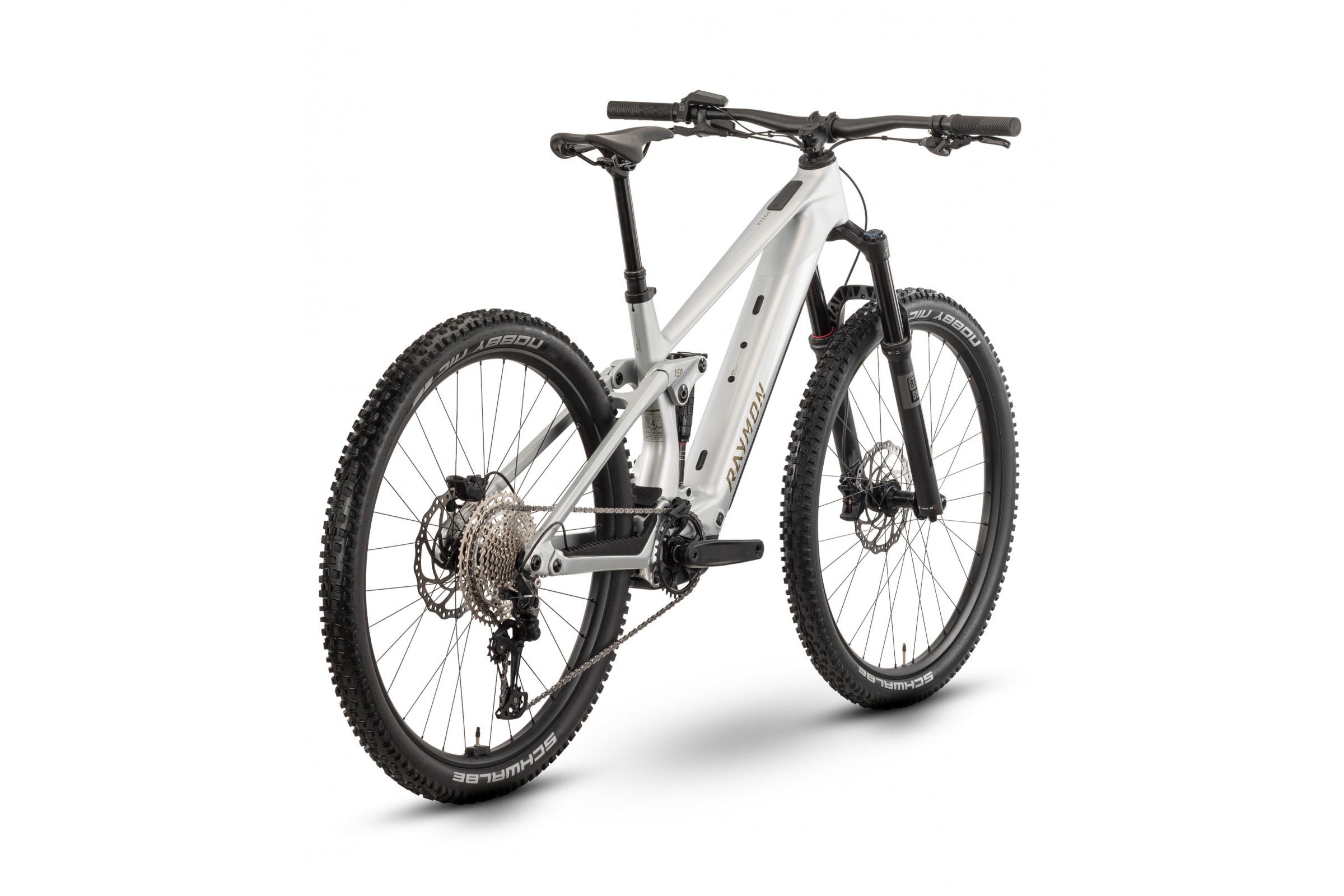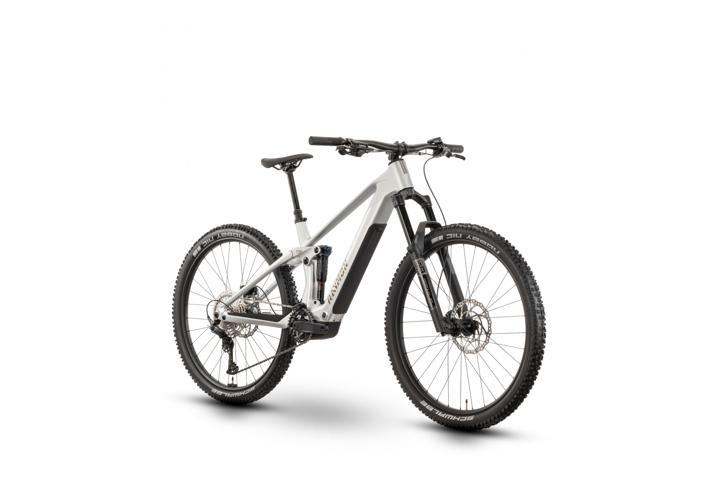 Rower wyposażono w koła Raymon VR23/DT210 (6-śrub, 15x110/12x148 mm) oraz opony Schwalbe Nobby Nic Perf Addix 29x2.40 Tubeless Ready. Taki zestaw gwarantuje doskonałą przyczepność, stabilność i odporność na przebicia, nawet podczas jazdy po trudnym terenie.