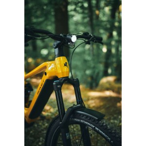 Podstawą tego modelu jest solidna, aluminiowa rama, zaprojektowana pod kątem maksymalnej wytrzymałości w dyscyplinie enduro. Charakteryzuje się ona niską wagą wynoszącą 27,2 kg, co jest optymalne dla tej klasy rowerów. Innowacyjne rozwiązanie to całkowite ukrycie baterii 800Wh wewnątrz ramy, co nie tylko chroni ją, ale i nadaje rowerowi estetykę czystej, górskiej maszyny.