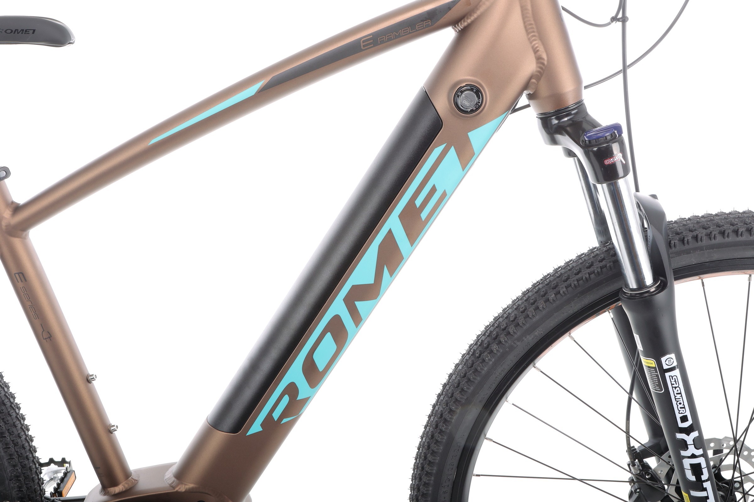 Rower górski elektryczny Romet E-Rambler E9.0 - mokka-turkus
