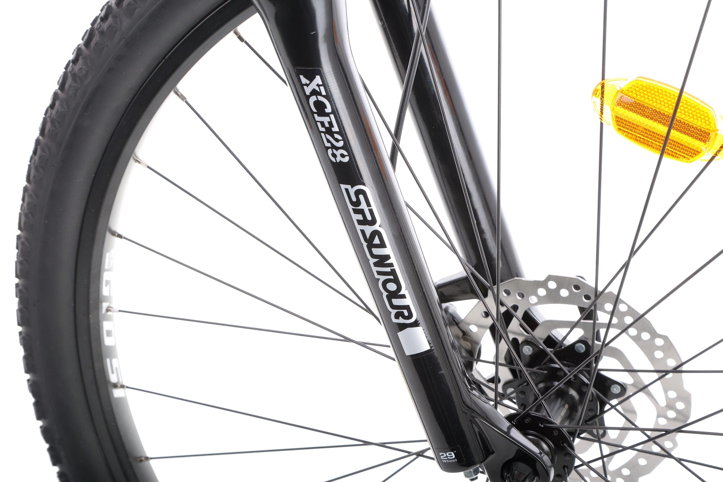 Na wyposażeniu roweru znalazł się SR Suntour XCE28 DS z 100 mm skoku, który skutecznie absorbuje wstrząsy i podnosi komfort jazdy w terenie. Dzięki niemu rowerzysta może swobodnie pokonywać kamienie i nierówności, nie tracąc stabilności ani pewności prowadzenia.